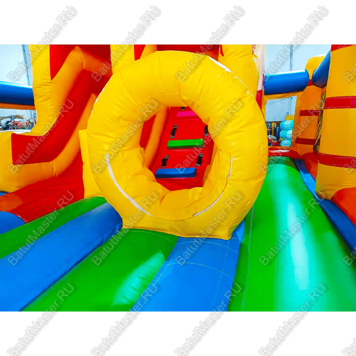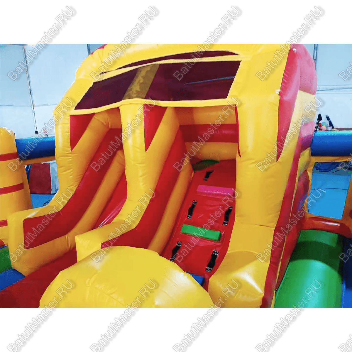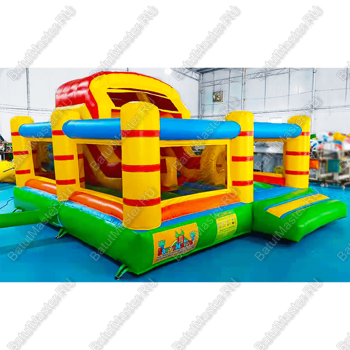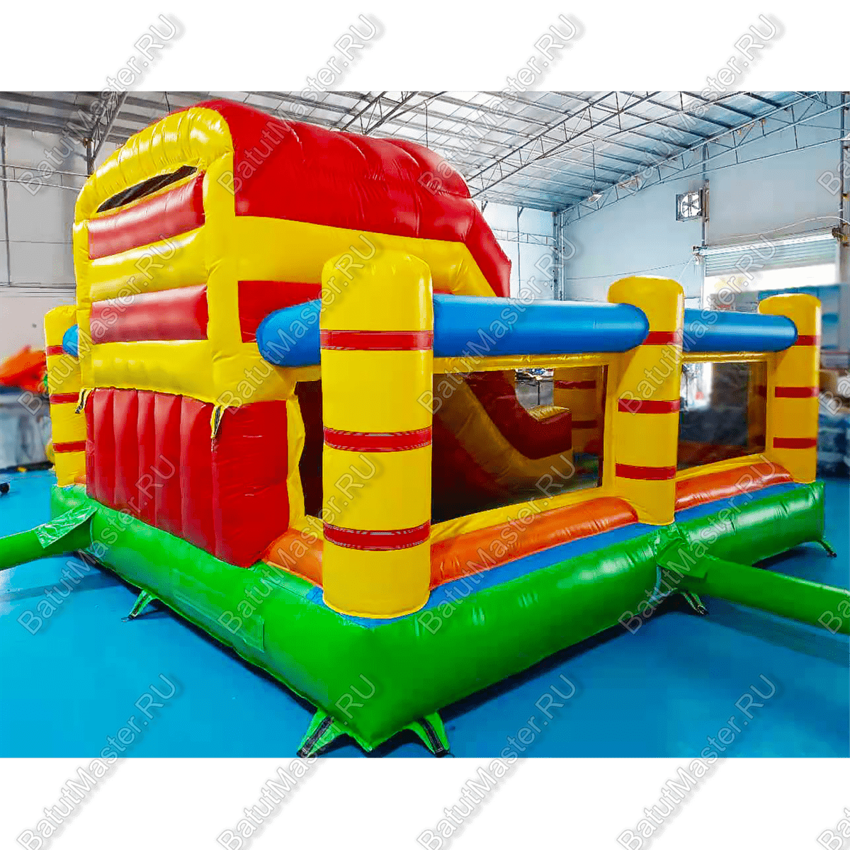 Изготовлен коммерческий батут – горка из высококачественного, нетоксичного поливинилхлорида. Такой материал проходит предварительное ламинирование и не выгорает на солнце. Изделия из него не боятся минусовой температуры и рассчитаны на длительную эксплуатацию.