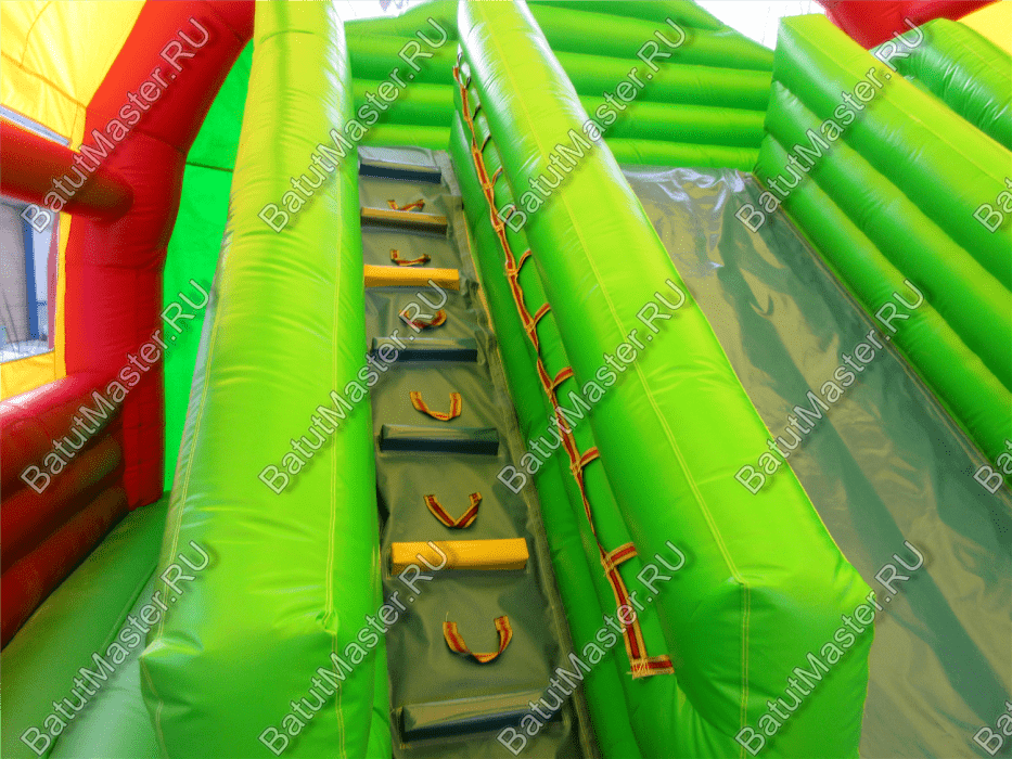 Развлечений много, и этот факт привлекает большое количество клиентов. Также особую роль играет цветовая палитра батута, дарящая уже хорошее настроение за счёт ярких цветов.