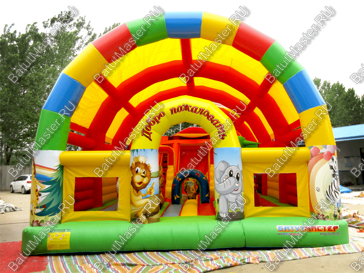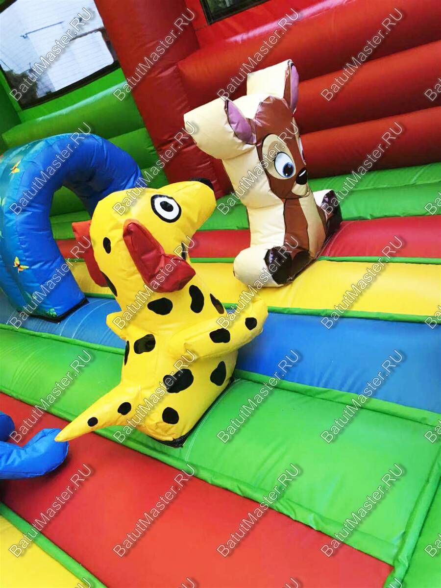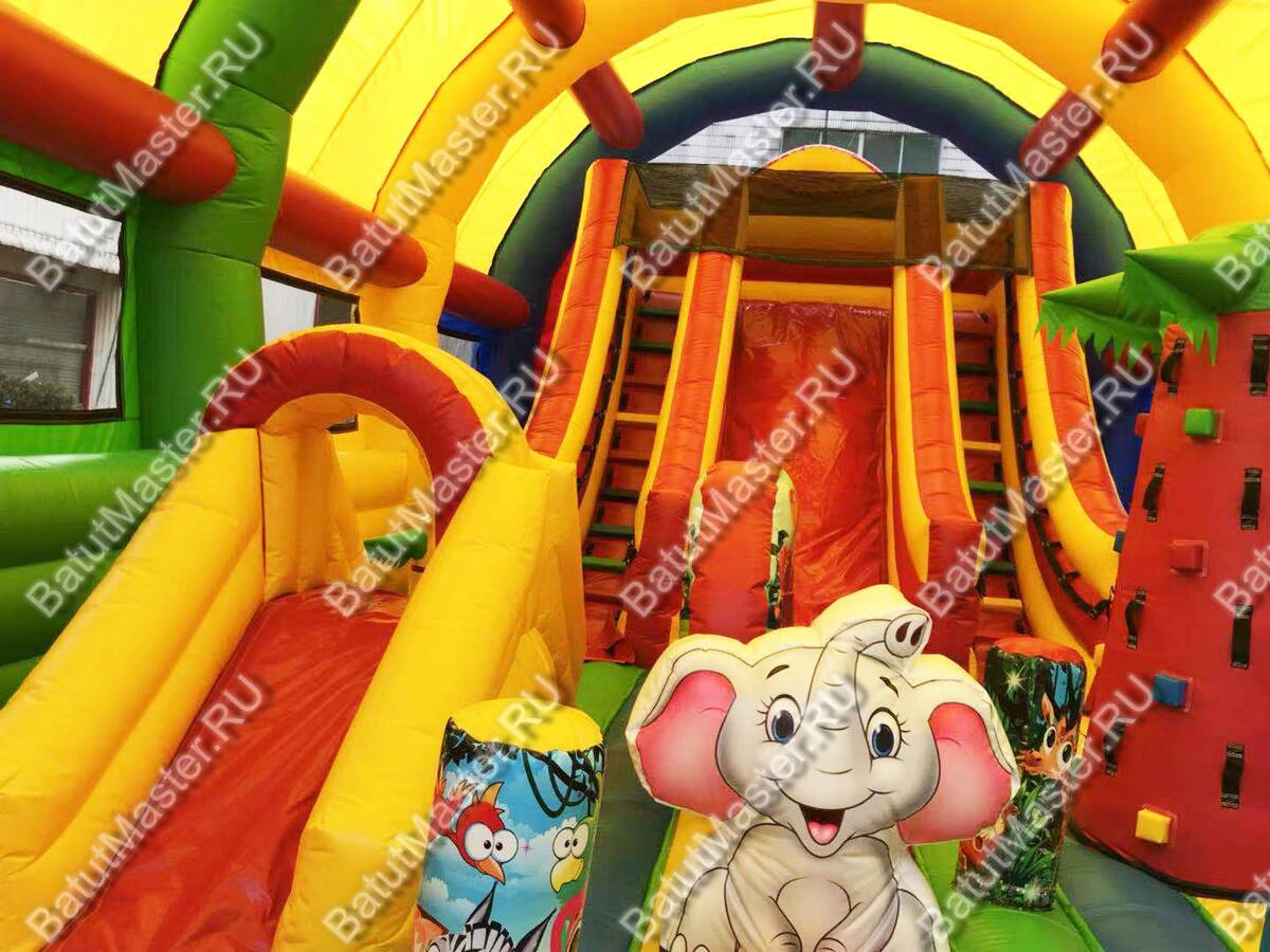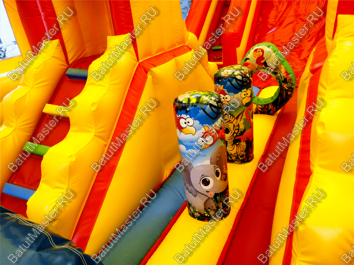 Внутри есть полно развлечений, которые поднимут ребёнку настроение на весь день. Например, они могут просто попрыгать на надувном батуте или же побегать, ведь именно для этого предназначаются батуты. Места внутри предостаточно, и ребята не будут чувствовать тесноты. Также они могут прокатиться с большой горки, что возвышается прямо по центру. Забраться на неё достаточно просто: нужно ухватиться за специальные петли и по надувным ступенькам ползти вверх. А дальше их ожидает весёлый и захватывающий спуск вниз по горке.