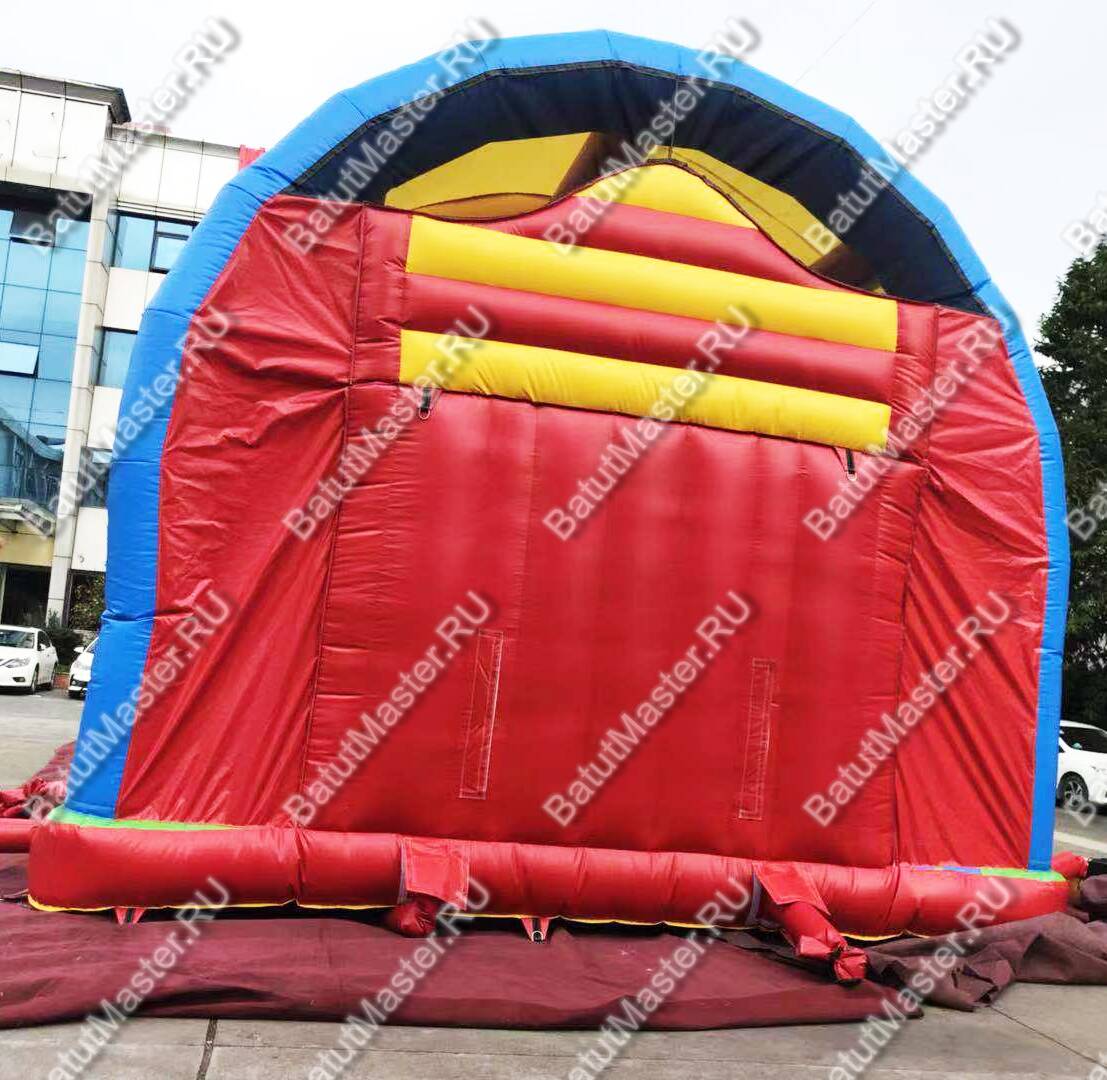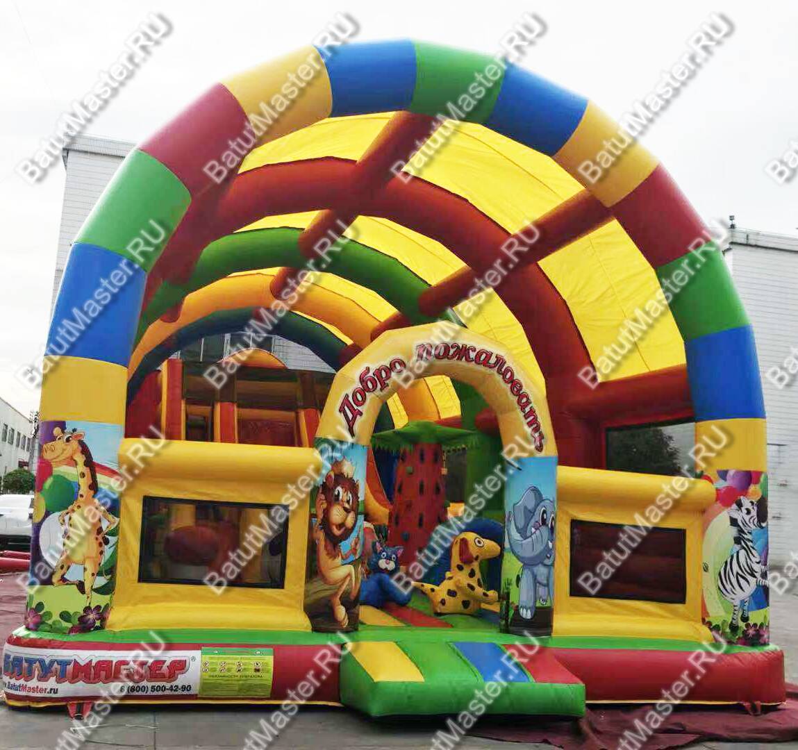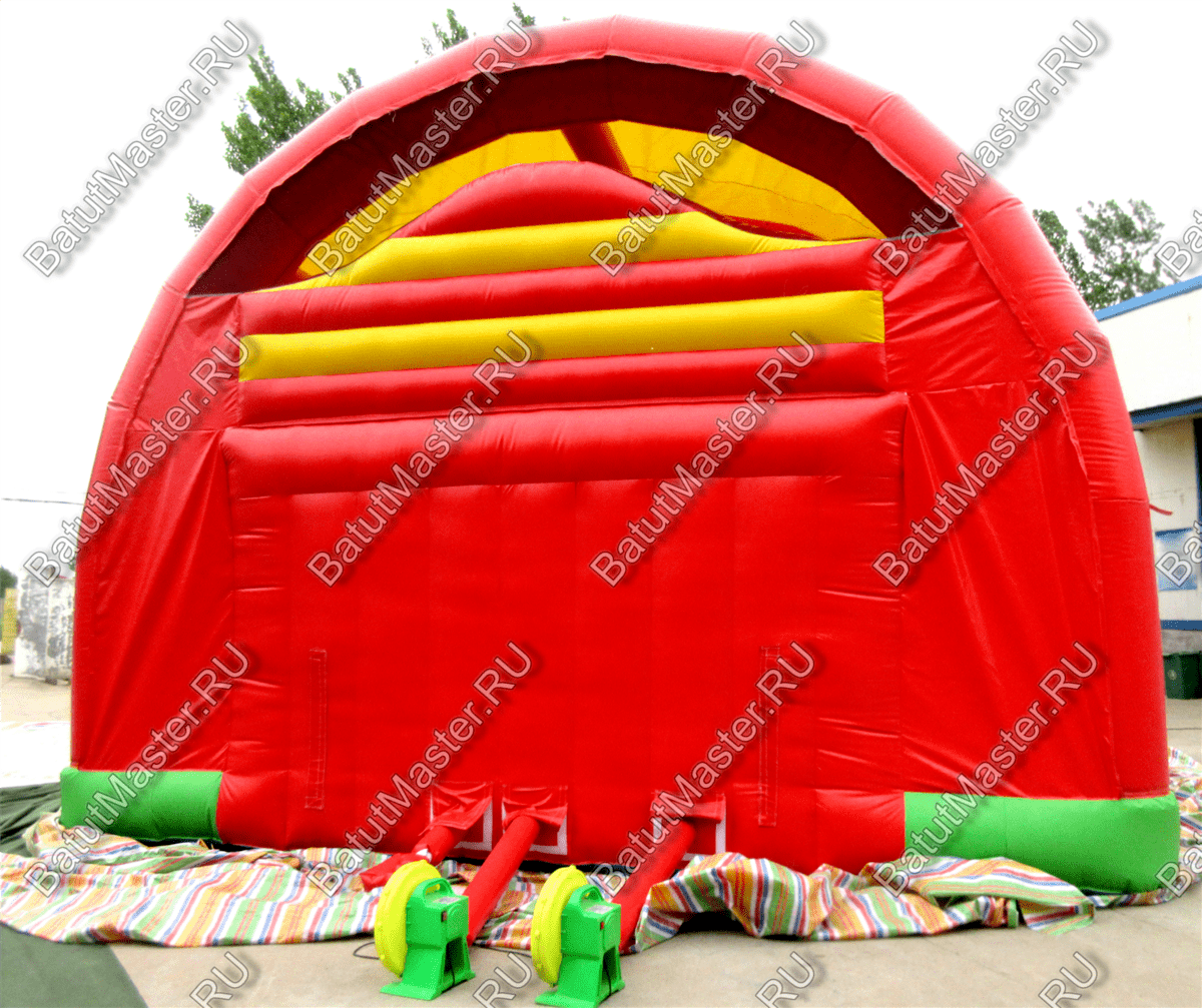 Аттракцион выполнен вместе с крышей, что очень хорошо для бизнеса, потому что батут можно будет разместить не только в помещении, но и на улице.