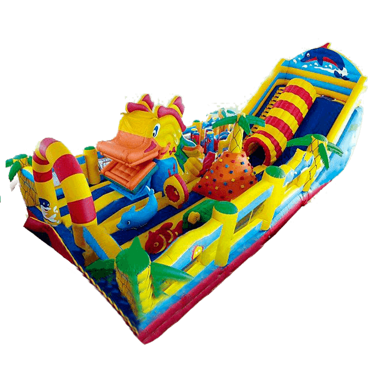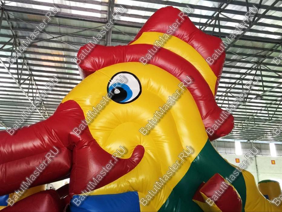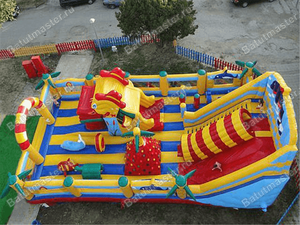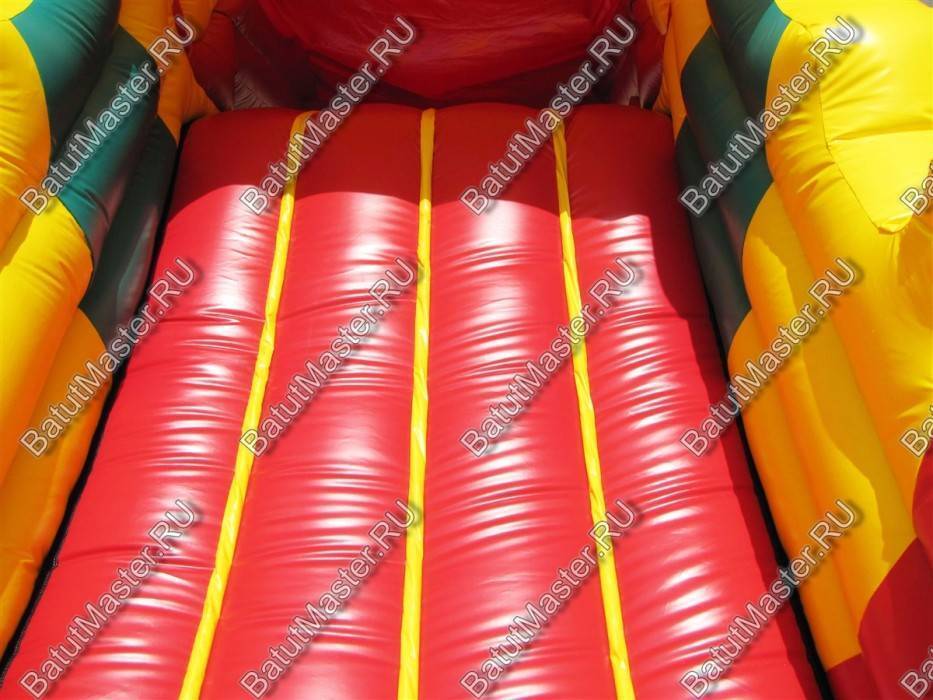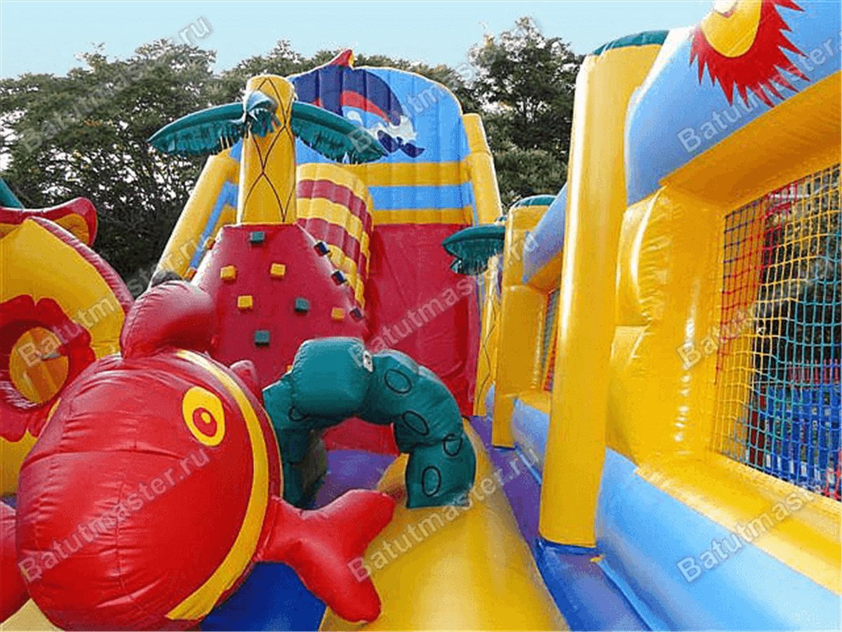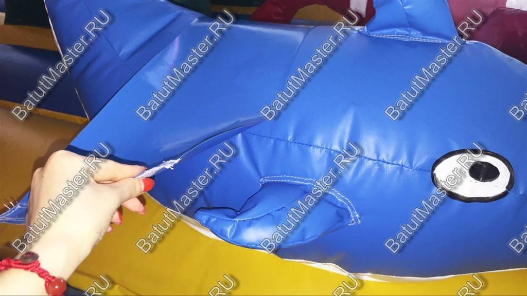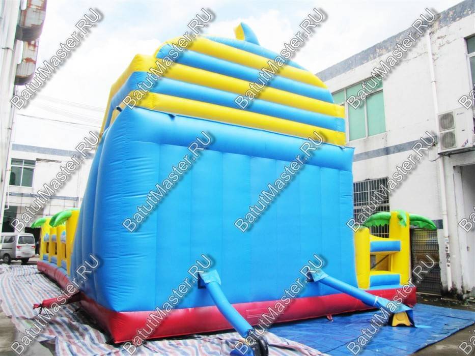 Пройдя все увлекательные препятствия, ребенок подойдет к самой главной конструкции – горке, которая находится у задней стенки и по всей длине оборудована желто-красным тоннелем. Слева от него можно взобраться по лестнице, а справа – спуститься вниз. На самой верхней площадке установлена подушка с изображением дельфина в прыжке. Аттракцион считается одним из самых популярных по своему дизайну, поэтому владельцы могут вполне рассчитывать на прогнозируемый доход.