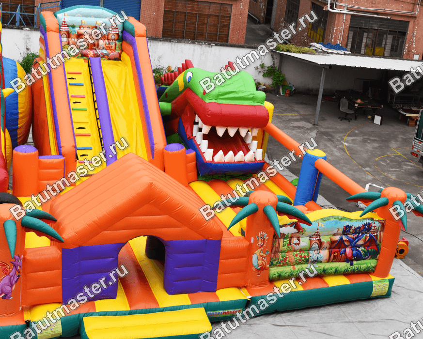 Если вы решили купить коммерческий батут, который почти мгновенно начнет приносить вам чистую прибыль, то остановиться следует именно на этой модели. Ни что так сильно не влияет на уровень вашего дохода, чем площадь самого аттракциона, то есть его проходимость. Но яркий батут может похвастаться не только этим свойством – внутри него установлен зеленый большой динозавр с робот-пастью красного цвета. Это именно то развлечение, которое занимает детей и подростков сейчас больше всего.