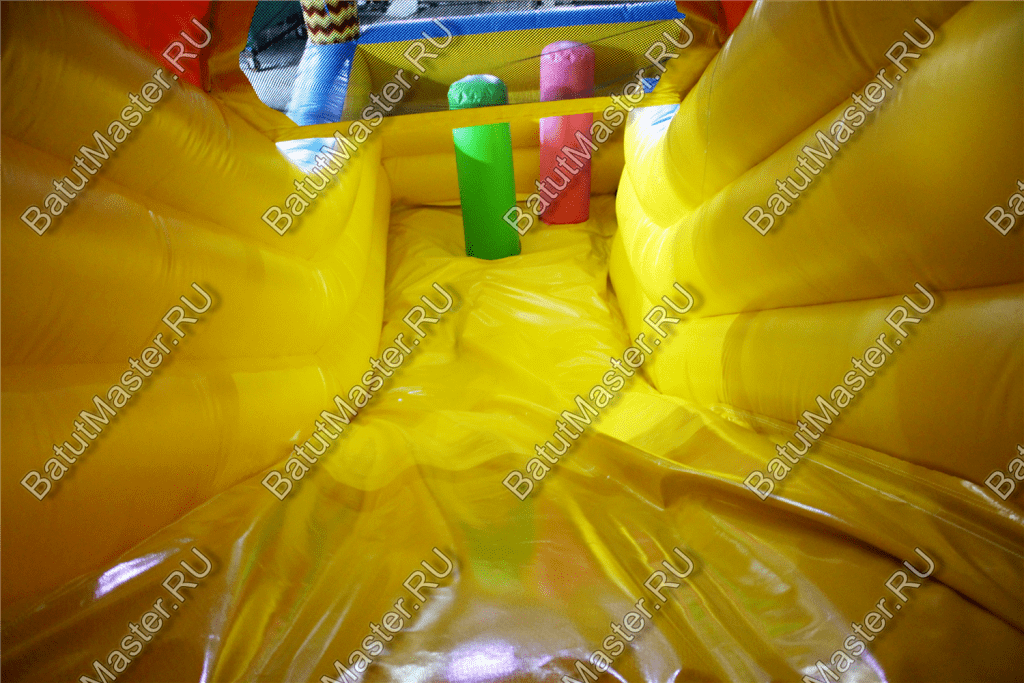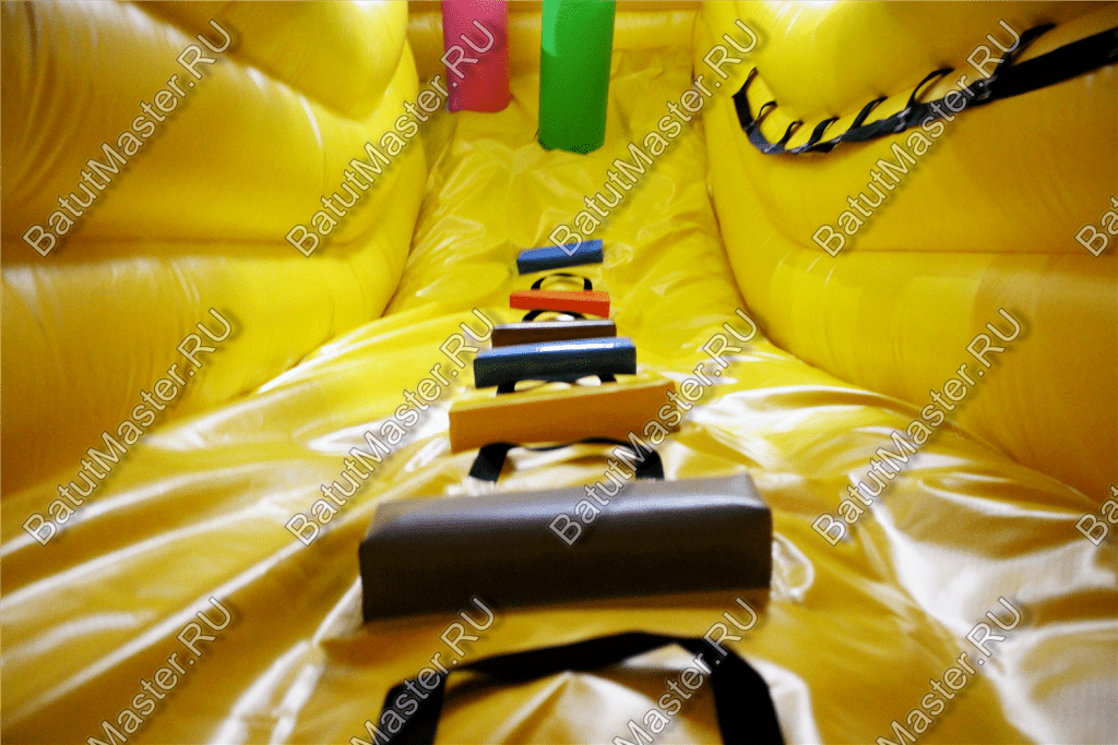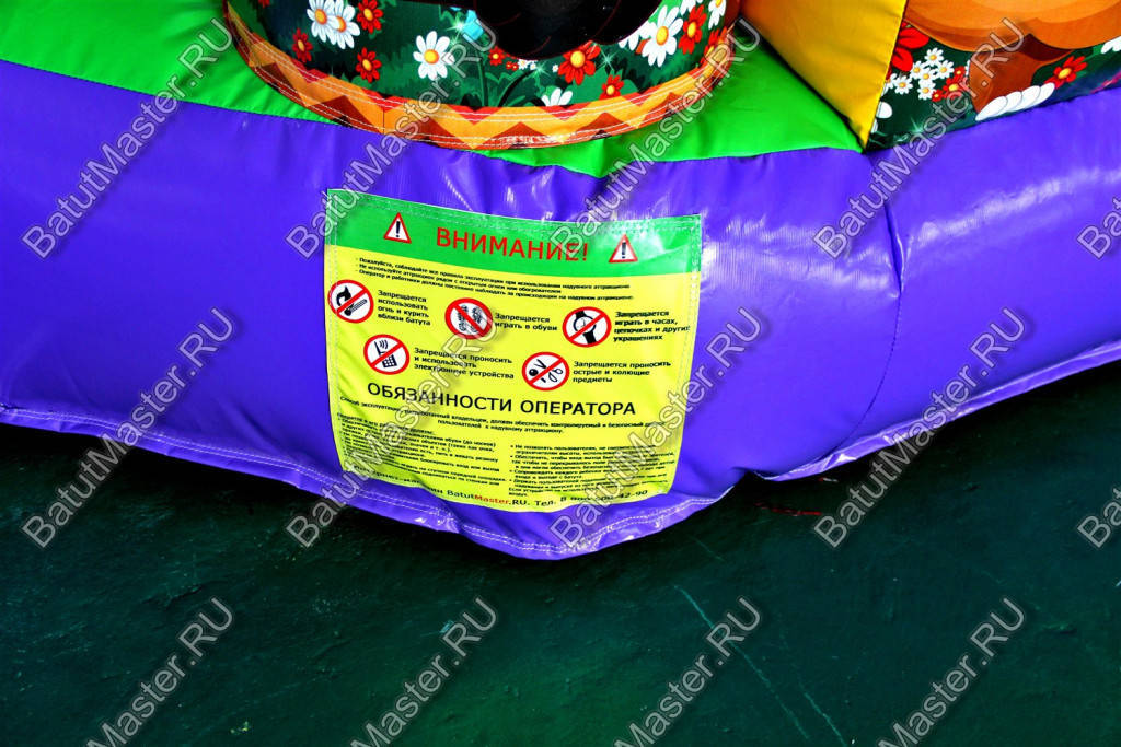 По бокам батута имеются высокие надувные борта, защищающие от выпадения с игровой арены.