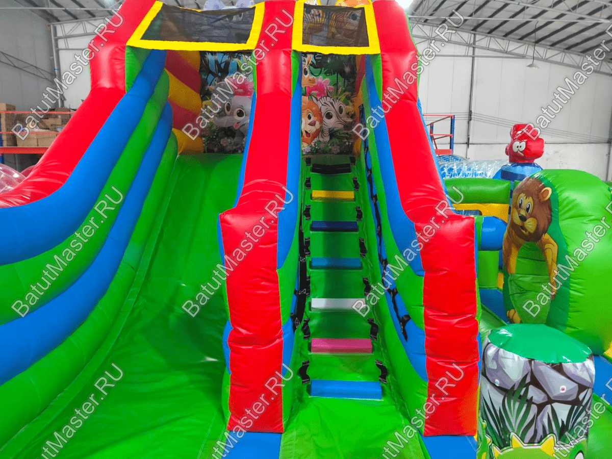 Надувной батут «Звериный мир» с горкой и аркой,с сеткой на входе 7*5*4,2 м