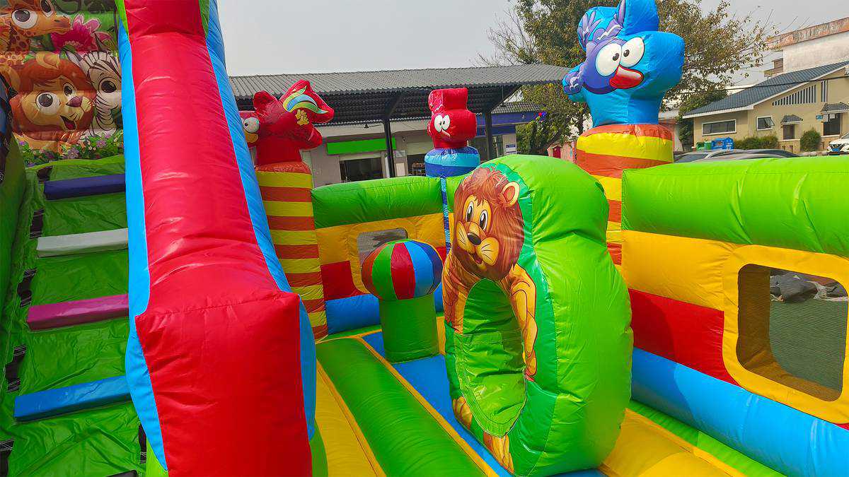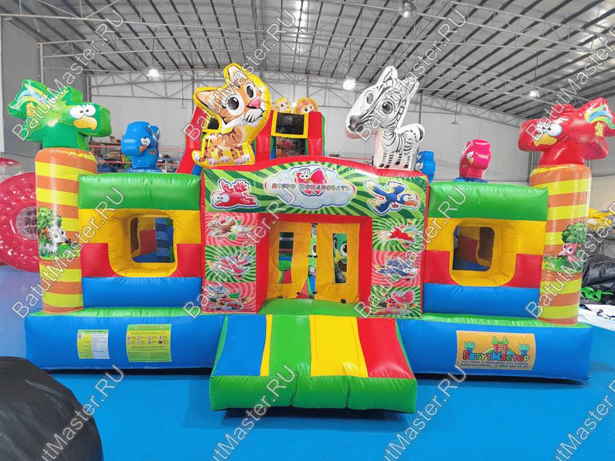 🛒 Надувной батут «Звериный мир» с горкой и аркой,с сеткой на входе 7*5*4,2 м купить за 0.0 ₽ | 🚚 Оплата при получении!