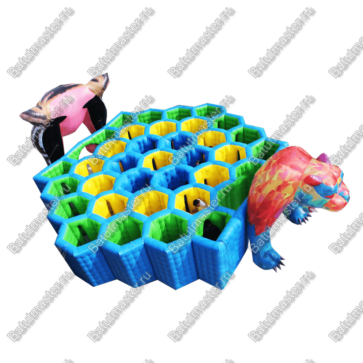 Дети когда увидят большую забавную разноцветную пуму, они сразу же захотят туда попасть и осмотреть пространство. Стоит отметить, что коммерческий надувной лабиринт для бизнеса выполнен из нетоксичный м материалов. Он не портится под прямыми солнечными лучами, а именно не выгорает, а также не сжимается при низкой температуре.