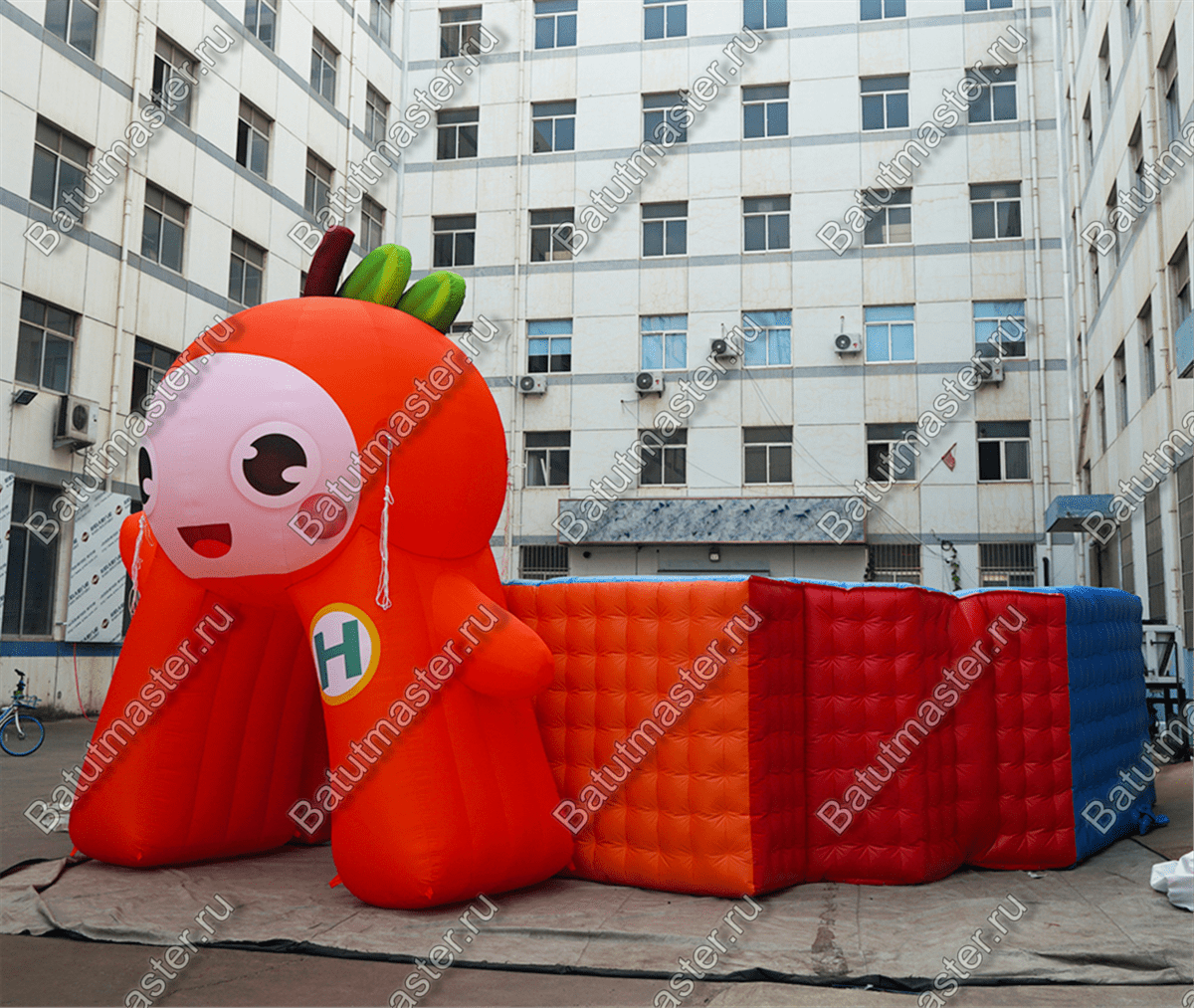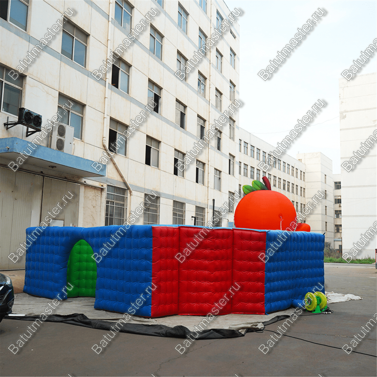 Яркий надувной лабиринт «Ранетка» встречает маленьких посетителей красочной надувной фигурой яблочка с ножками и ручками. Яблочко нарочно сделано в виде человечка, чтобы привлечь малышей, у него даже есть забавная мордашка.