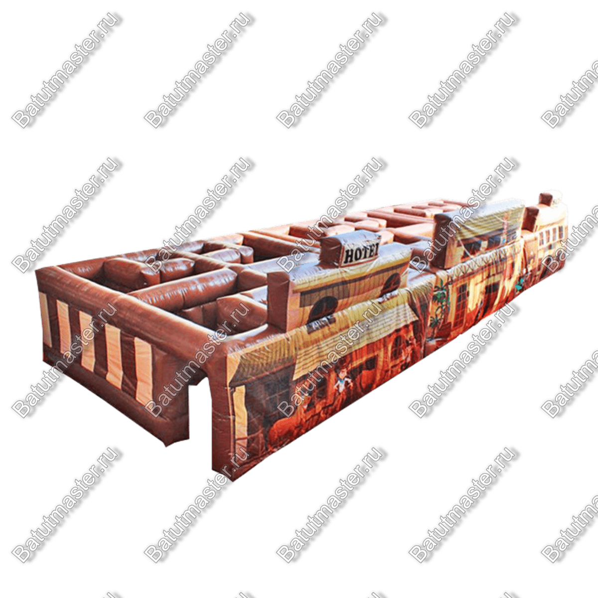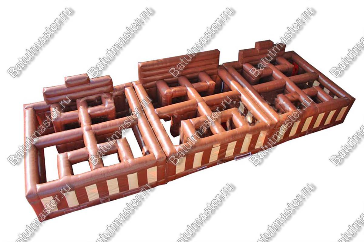 Стоит отметить, что надувной лабиринт сделан из качественных материалов, а именно пвх. Внутри каркаса имеется воздух, который постоянно туда доставляется с помощью мощного компрессора. Снаружи у него имеется имитация магазинчика и фасада здания отеля. На установку такой конструкции не уйдет много времени. В собранном виде она удобно храниться, и переносит перепады температуры.