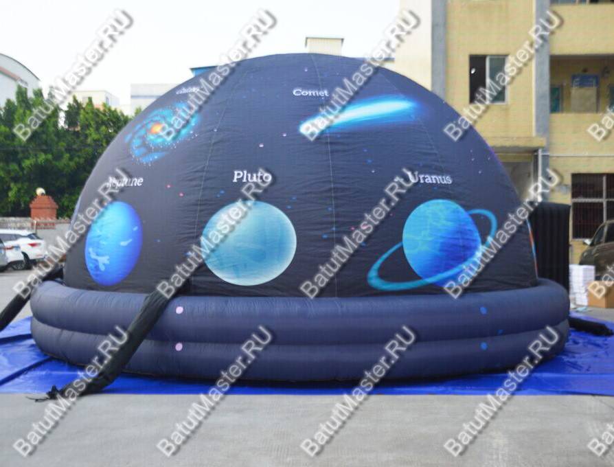 Надувной шатёр «Космический» отличается не только основными качествами данных конструкций, но и очень привлекательным внешним видом, который зацепит внимание любого прохожего. Космическая тематика, используемая в оформлении шатра, интригует и создаёт атмосферу загадочности. Людям будет очень интересно узнать, что же находится внутри этого красивого шатра, на котором красуются планеты, звёзды и другие космические объекты.