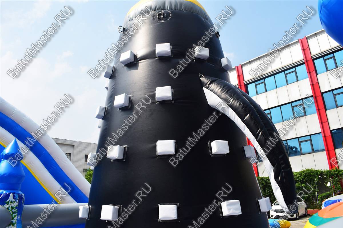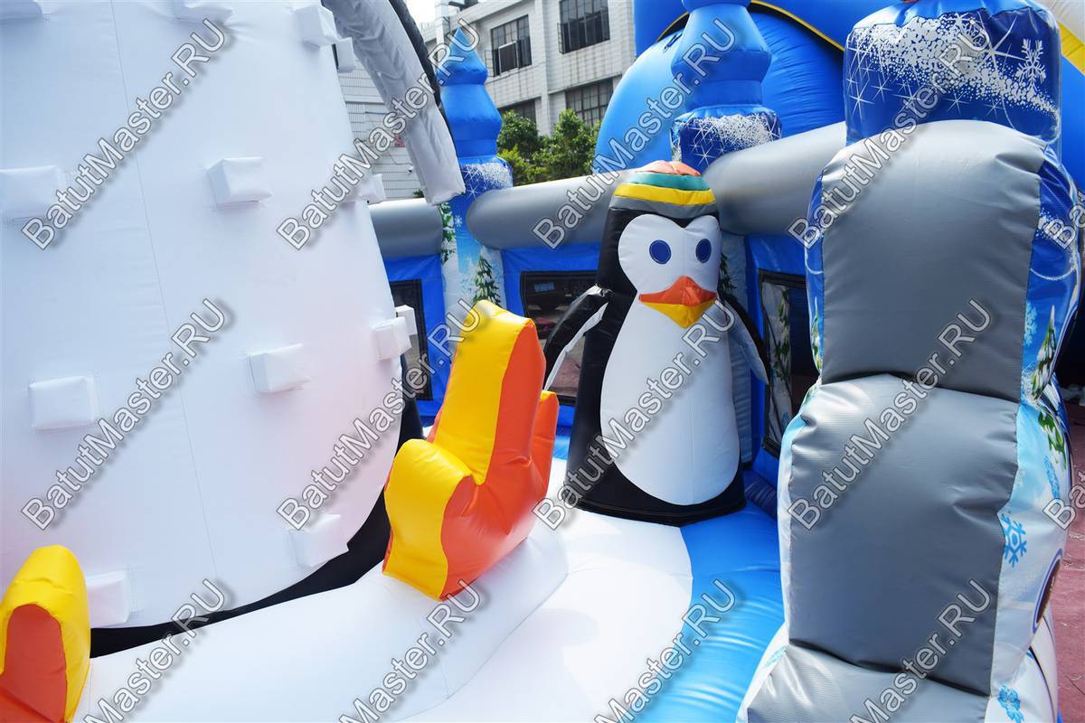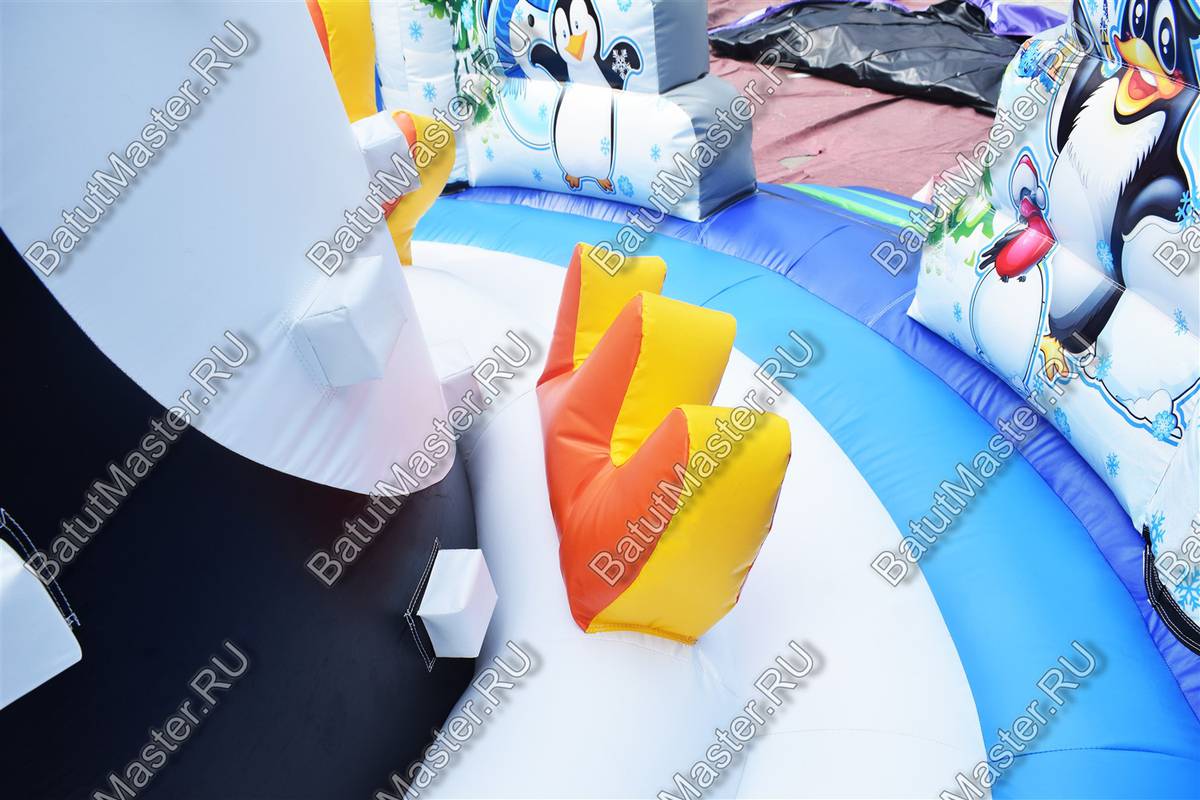 Настоящее ледниковое приключение с дюжиной пингвинов разного размера. Площадка округлой формы преимущественно белого цвета со всех сторон обнесена белыми мягкими столбами с синими потеками, якобы от таяния льдов. Большая часть территории – это место для прыжков и для бега, посреди которого расположился огромный пингвин в виде высокого скалодрома. Кажется, что пингвины здесь повсюду – изображены на стенах конструкции, в самом центре аттракциона и в качестве небольших игровых фигур.