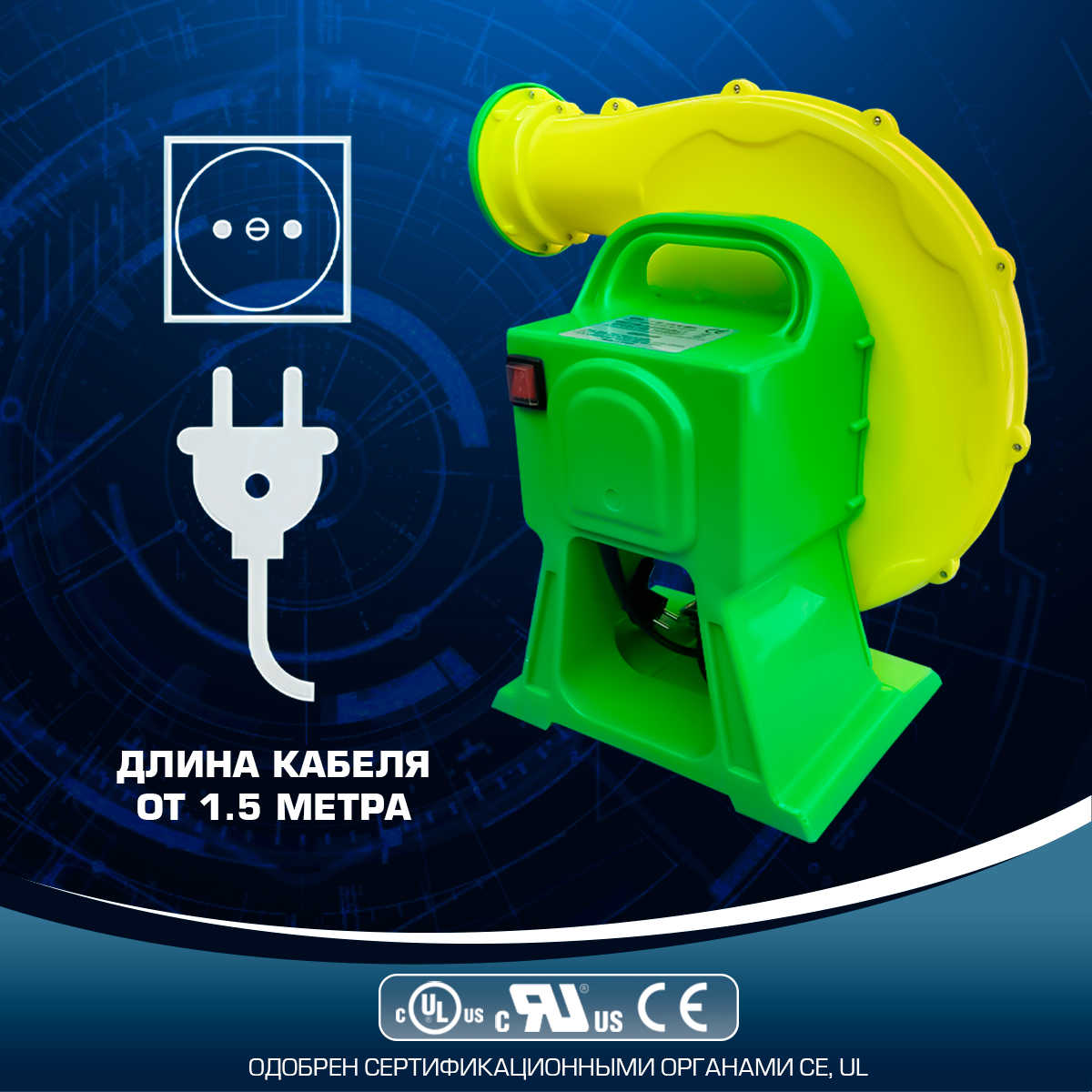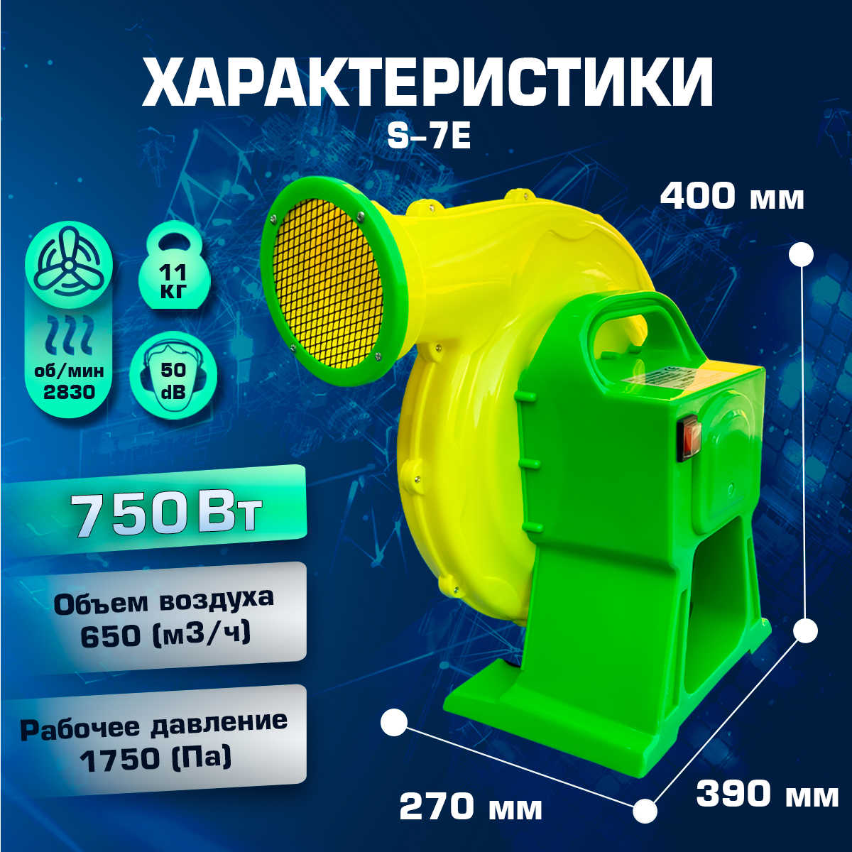 Высокая производительность: Насос способен нагнетать до 650 м³ воздуха в час, что значительно сокращает время на подготовку аттракционов.