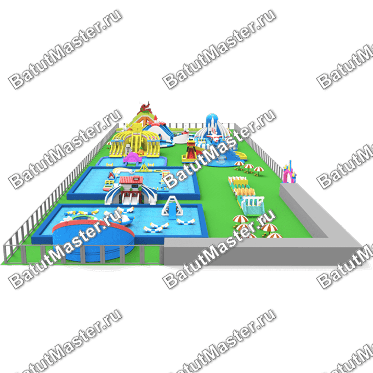 Наземный надувной аквапарк может занять не только самую популярную площадку в вашем городе, но и стать главным аттракционом побережья. Внушительные размеры, яркость и насыщенность цветов не оставит равнодушных даже взрослых. Полностью просматриваемый с полупрозрачным ограждением комплекс водных аттракционов обязательно оправдает ваши надежды и окупится в ближайшее время.