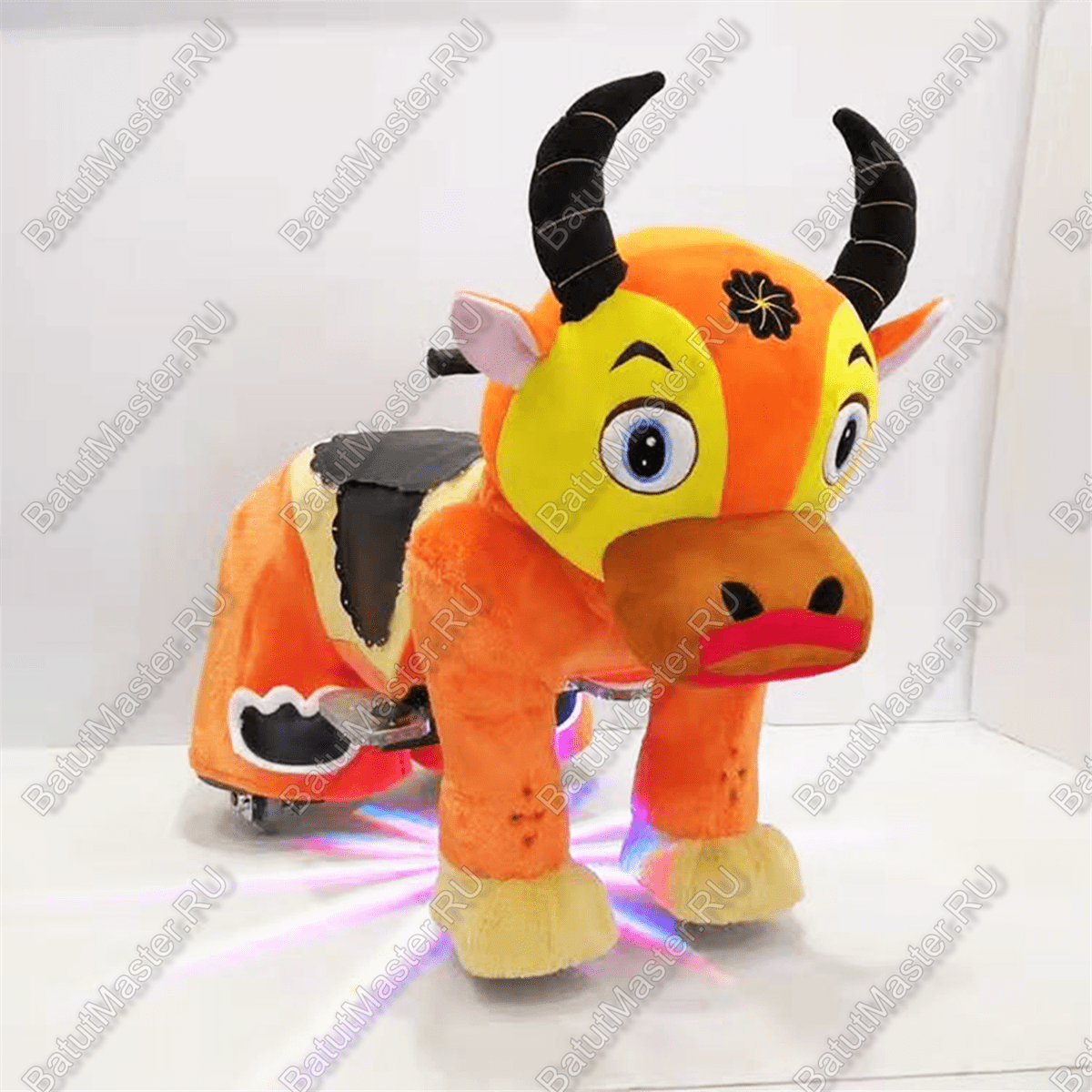 Особенностью конструкции паркового аттракциона стало использование высококачественных материалов. Изделие обладает надежностью и прочностью, подходит для активной эксплуатации в прокатных сервисах. Бычок весит не много, его можно легко перевезти из одного места в другое, без использования специализированной техники.
