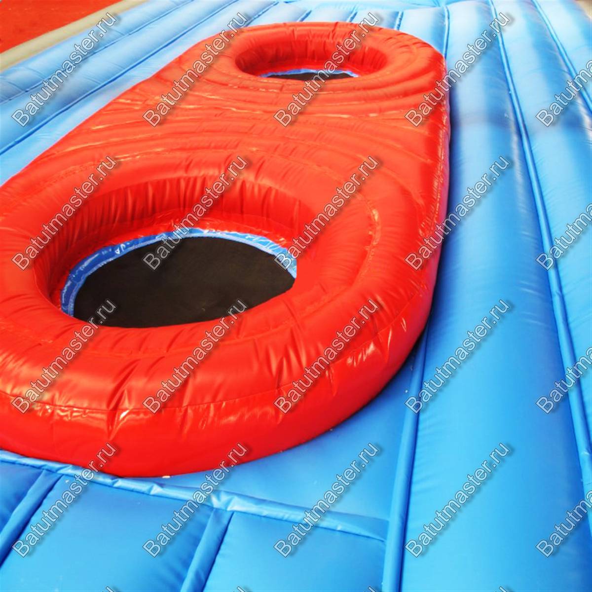 Стоит отметить, что площадка для игры в боссабол полностью надувная, не имеет жестких элементов, поэтому подлетать вверх и падать совершенно безопасно.