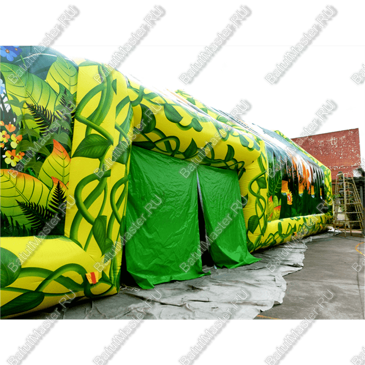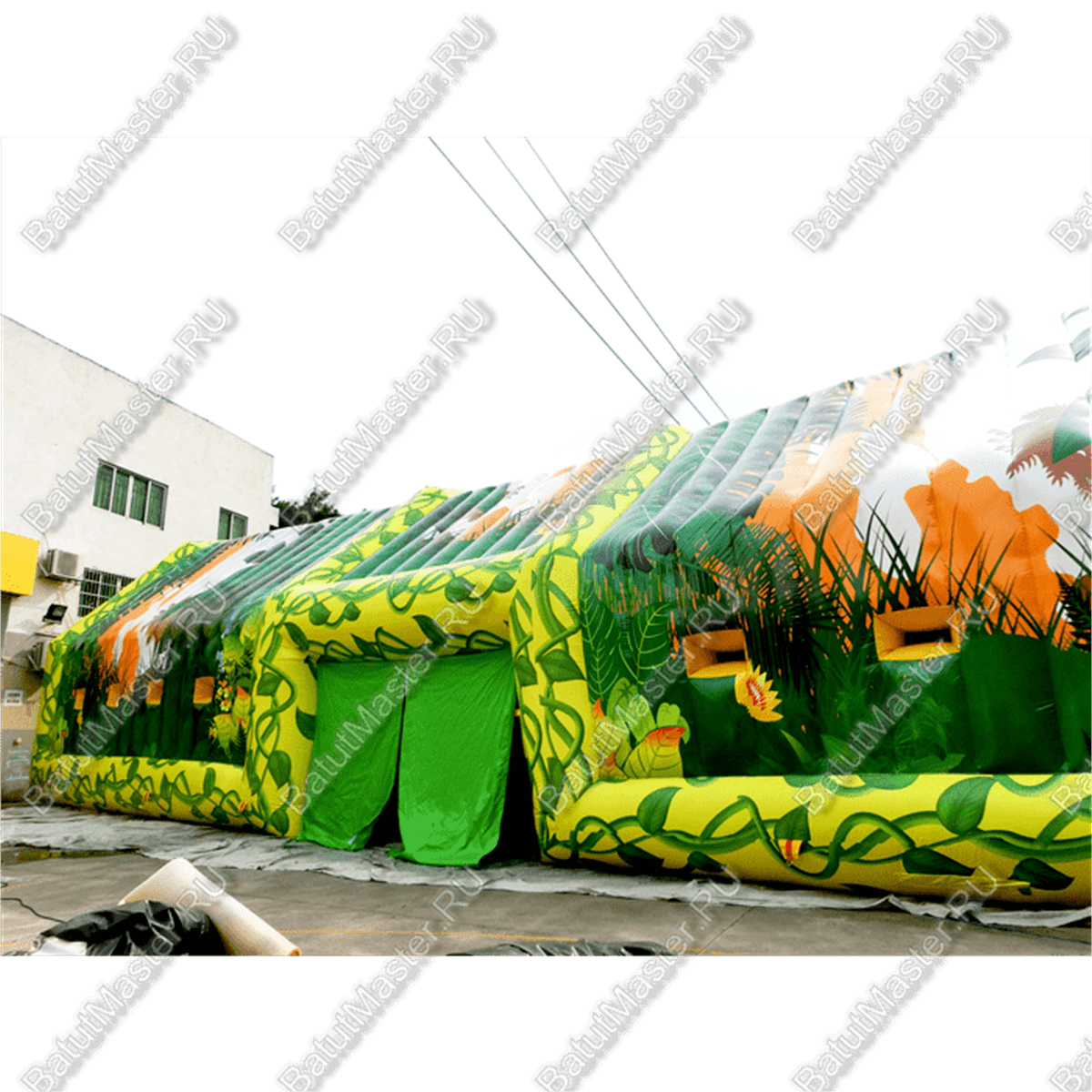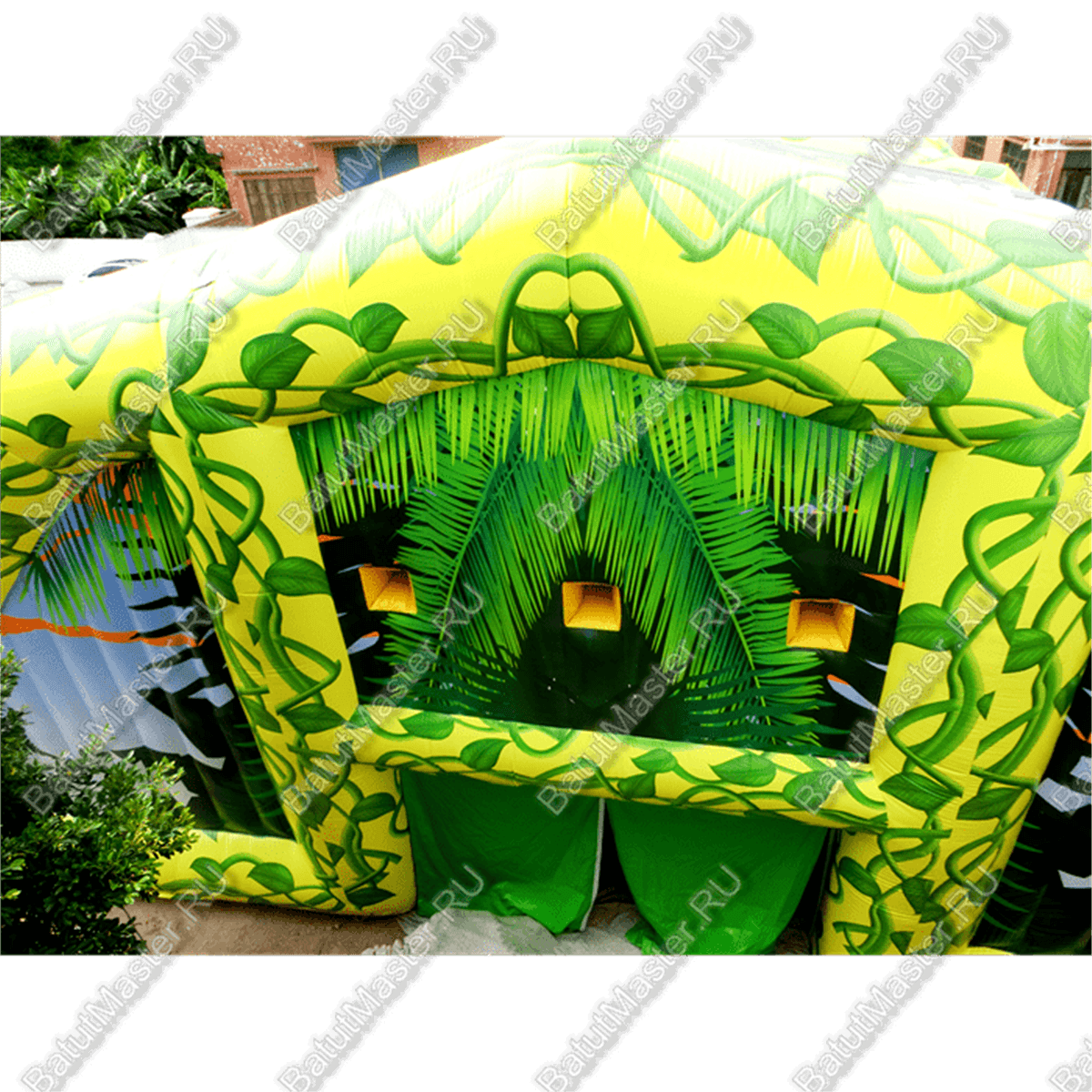 Большой надувной пневмоангар на постоянном поддуве «Единство с природой» может влюбить в себя любого прохожего, ведь он имеет потрясающий яркий внешний вид. Этот пневмоангар украшен качественным ярким принтом с изображением дикой природы тропиков. Такая стилистика будет отлично смотреться на детских праздниках или на мероприятиях связанных с природой.