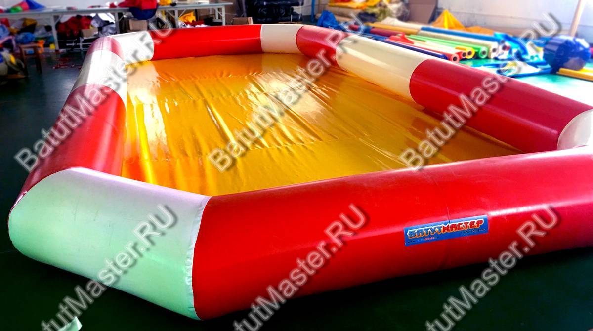 После использования обязательно слейте воду и просушите бассейн перед хранением — держите его в сухом помещении при температуре от -10 до +40 °C. Если случился разрыв оболочки или швов (что бывает крайне редко при правильной эксплуатации), достаточно выпустить воздух и наложить заплатку. Размер заплаты должен быть больше повреждения минимум на 5 см и иметь закруглённые края. Используйте клей для ПВХ, или любой полиуретановый — нанесите клей, дайте подсохнуть до липкости, прижмите заплатку и оставьте под грузом на 24 часа. После этого аттракцион можно снова безопасно использовать.