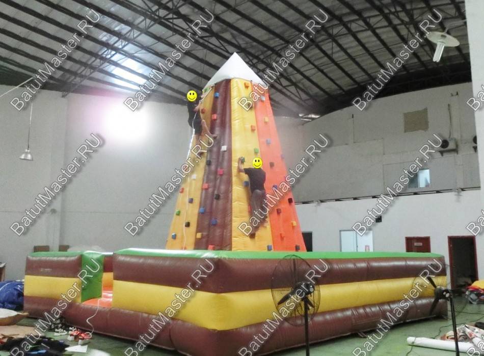 Мягкий батут в виде высокой пирамидальной скалы с разноцветными фиксаторами