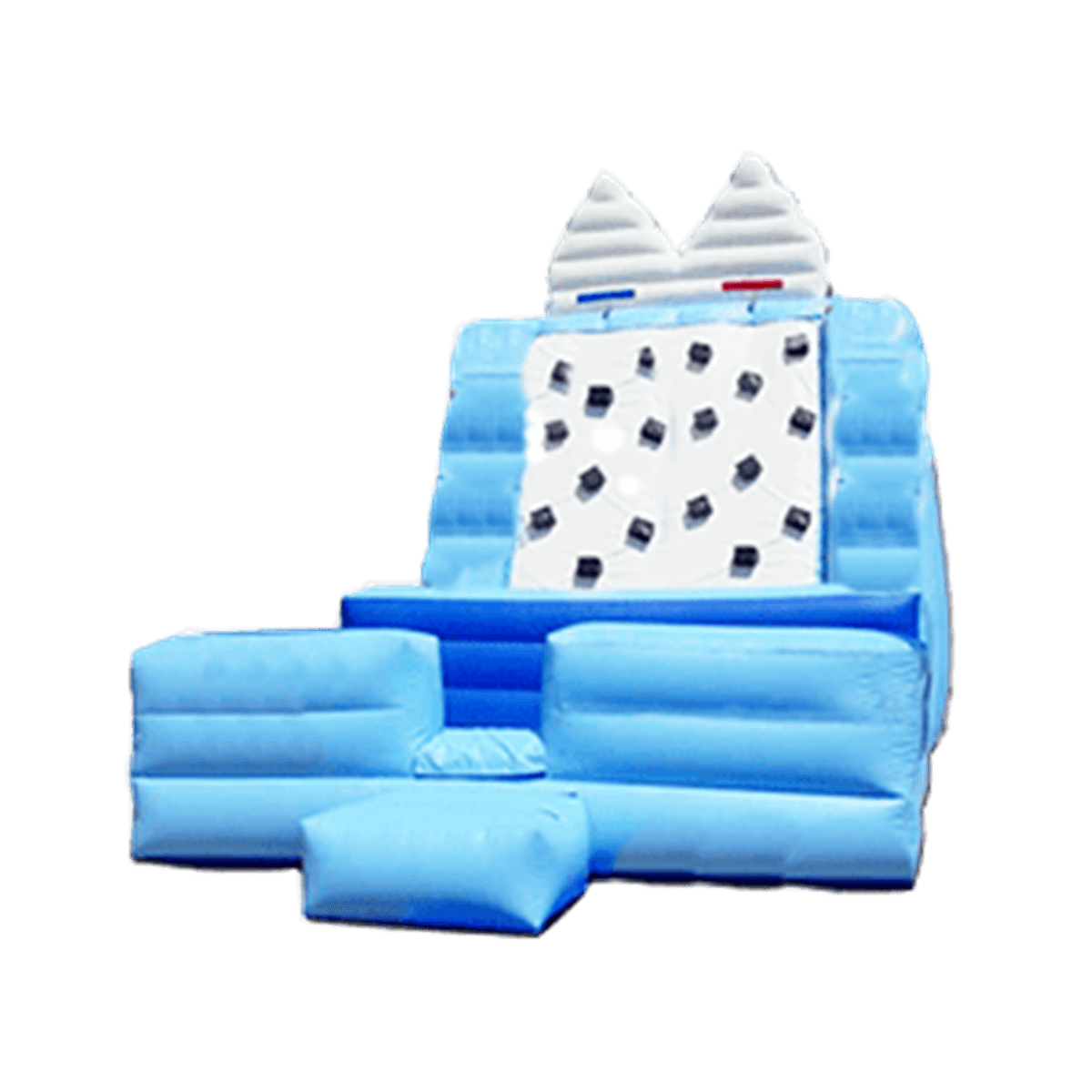 Яркий надувной батут – скалодром, выполненный в виде льдинки, имеет две зоны, одна из которых, это зона для прыжков. Это не просто скалодром, а стена со щитами. Особенно дети любят состязаться между собой и проверять себя на выносливость и ловкость. Забираться высоко на верх, а потом спускаться вниз, все это вызовет невероятные ощущения и эмоции. Здесь есть достаточно места для приземления. Современный комплекс для тренировок по альпинизму и просто для веселого времяпровождения.