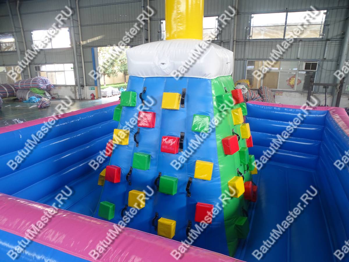Коммерческий надувной батут - скалодром изготовлен из ламинированной ПВХ ткани высокого качества. Особая технология производства позволяет материалу противостоять солнечным лучам и сохранять свой исходный цвет, а также не поддаваться возгоранию.