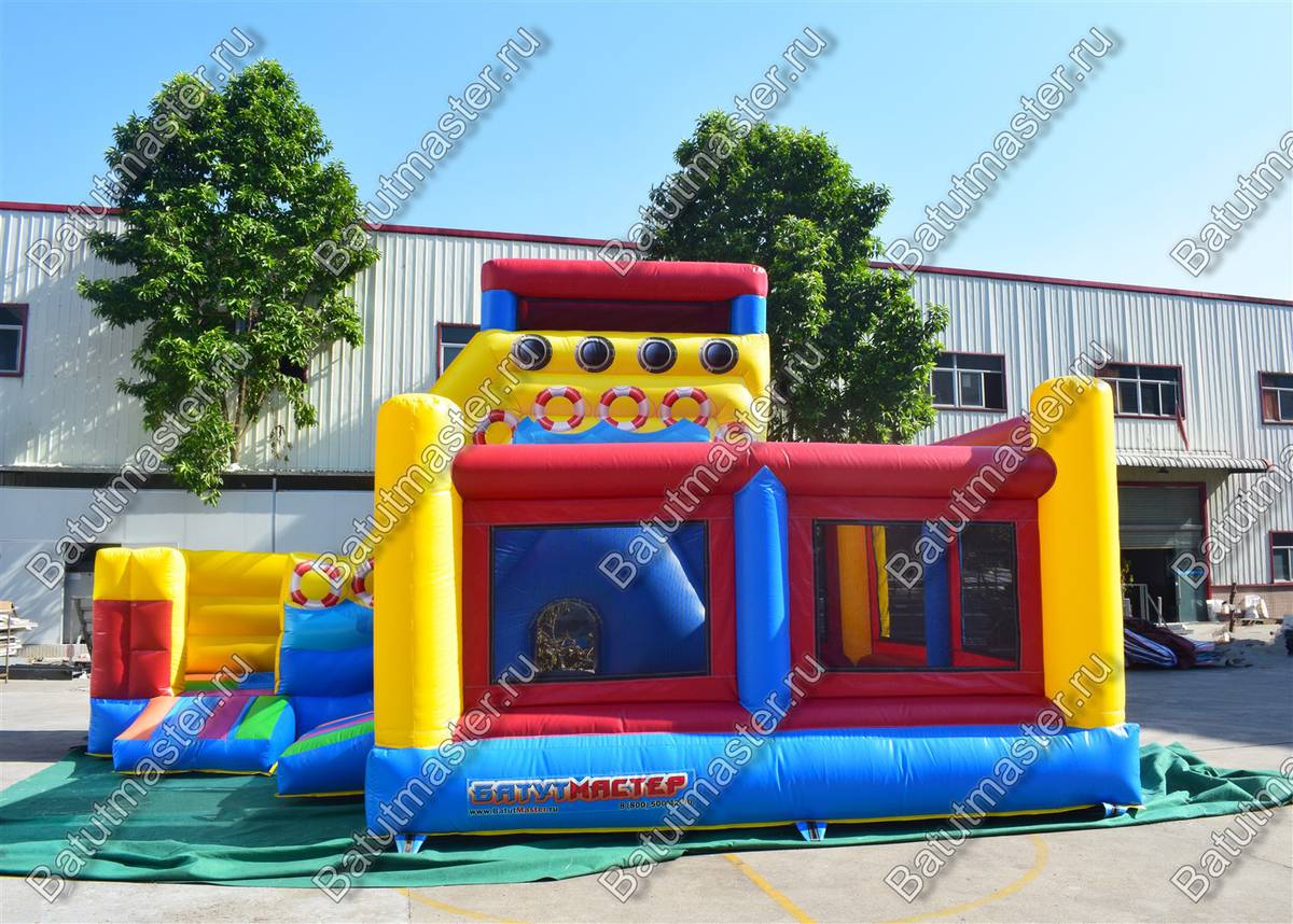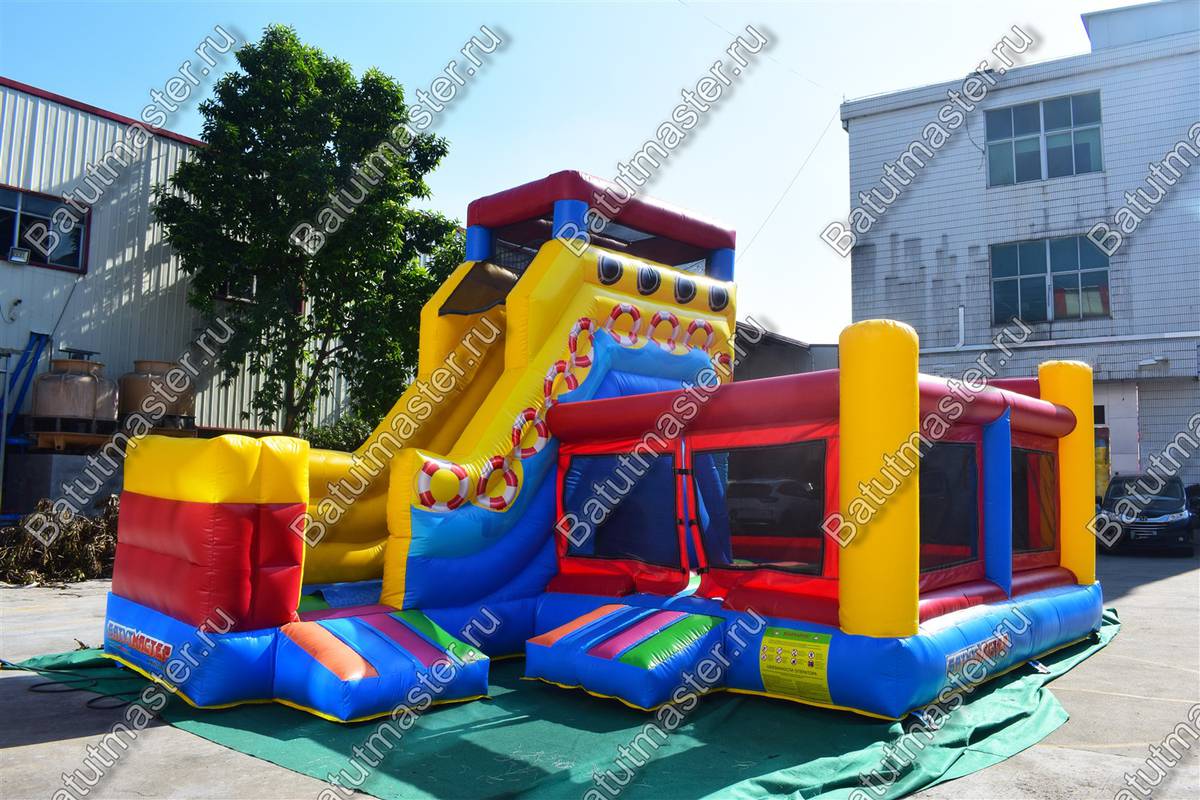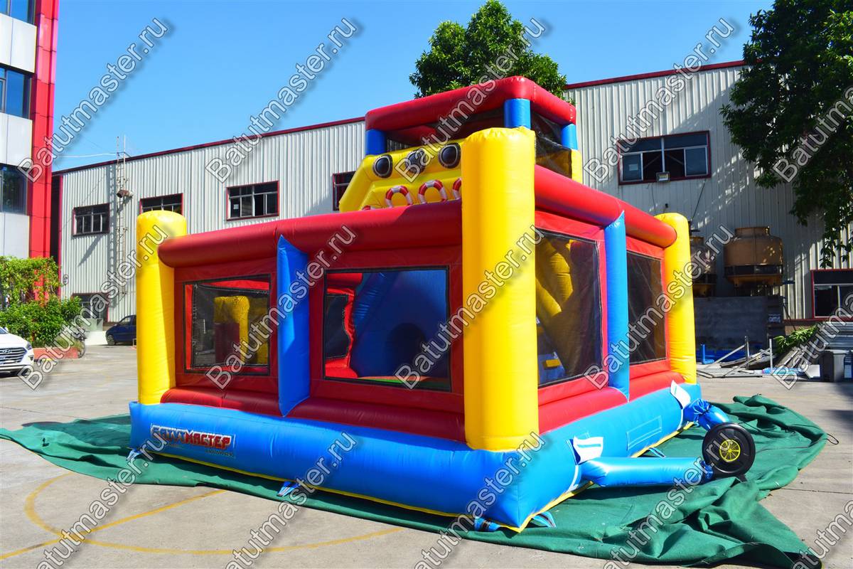 - одна из них является горкой, которая снабжена защитной сеткой в верхней и средней части, что позволяет не беспокоиться о безопасности юного покорителя высоты. Она имитирует корабль, затерявшийся в бушующем море. Созданный внизу карман и боковой вход ограждают юных спортсменов от вылета за пределы спортивного инвентаря.