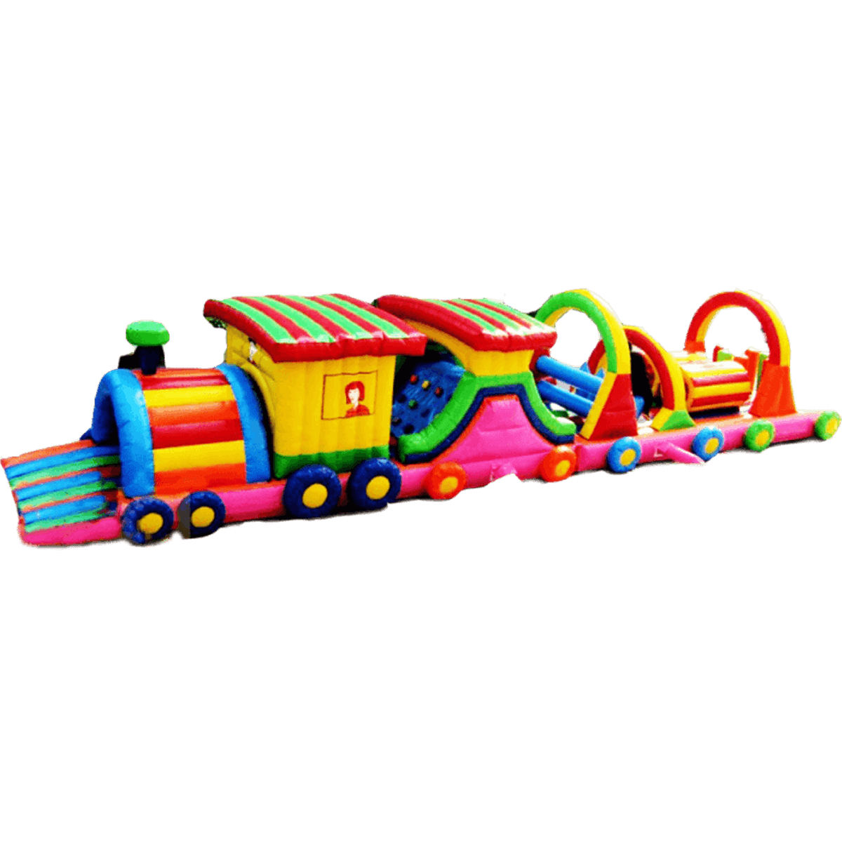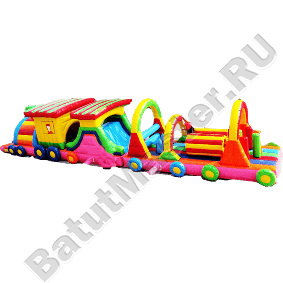 Что может быть еще потешнее и радостнее, чем детская надувная полоса препятствий в виде яркого красочного паровозика? Это целый домик в виде бесконечного лабиринта, который можно преодолевать раз за разом. Различные элементы такого состава, которые заставляют пролазить, перепрыгивать или переступать – настоящее удовольствие и свой маленький мир для ребенка.