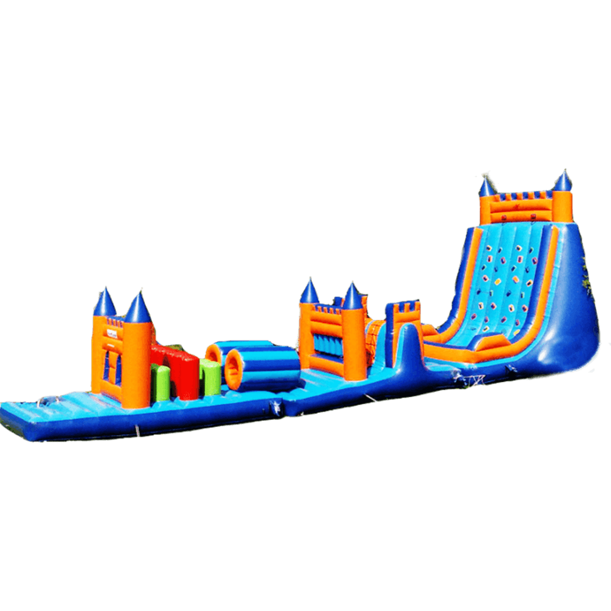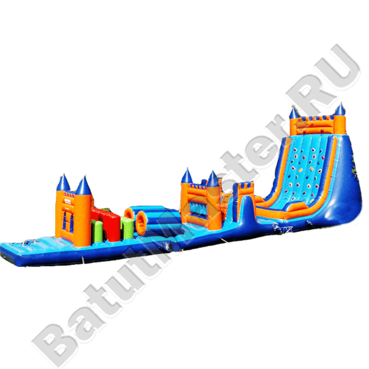 Ворота будут сменяться великой стеной (желто-синей), на нее тоже придется напасть и взять «боем». Когда мелкие препятствия подойдут к концу, начнется самое потешное – огромная голубая «скала». На ней будет целое множество цветных островков для более удобного достижения верхней высоты. Если ребенок хоть немного слышал, что такое альпинизм, то этот барьер для него будет несложной преградой. После покорения высоты можно будет с удовольствием прокатиться с такой горки.