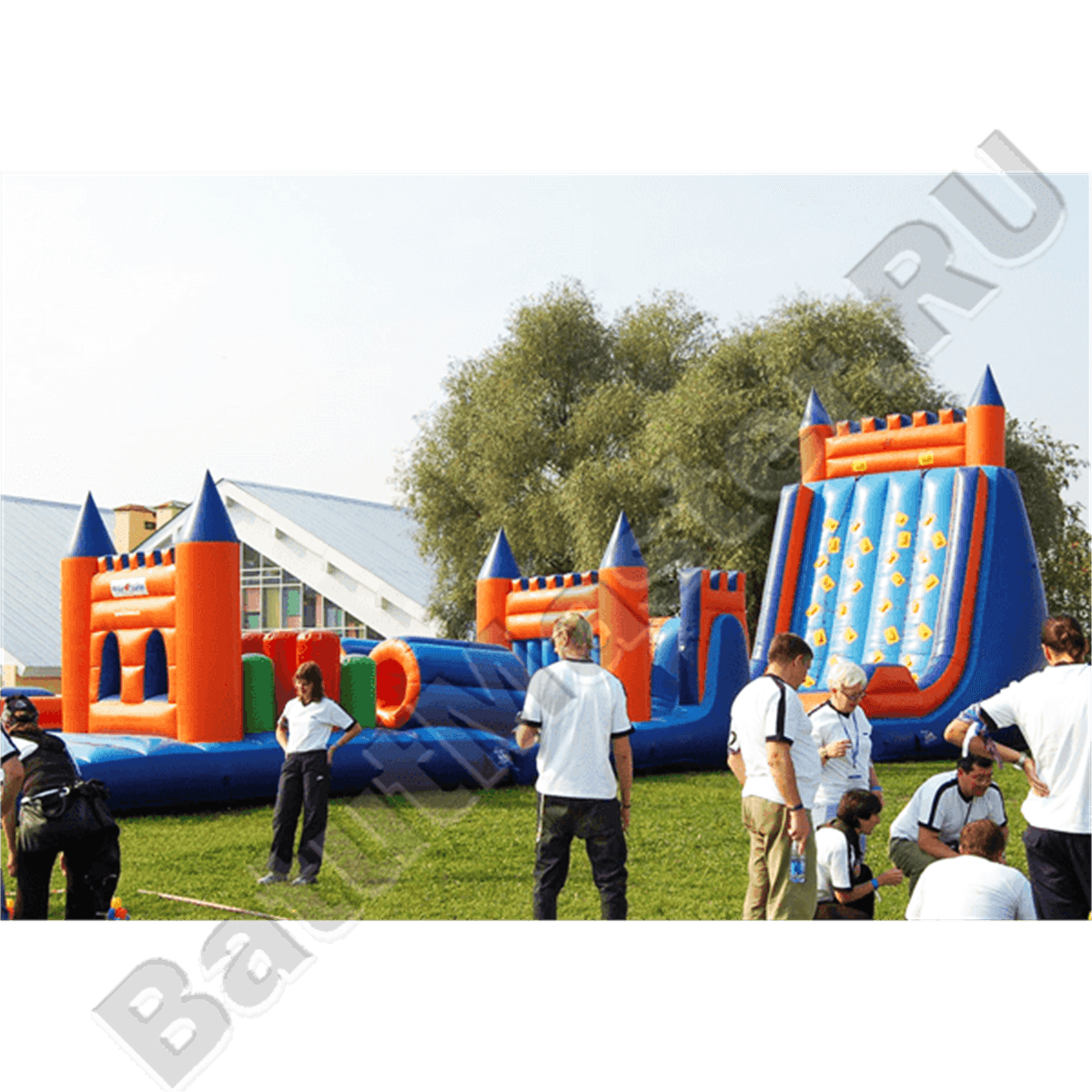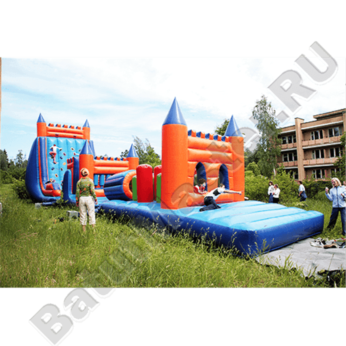 Отличный замок с приключениями для детей – это возможность не только заработать, но и доставить немало радости. Яркий и интересный, будто находится среди моря, полоса препятствий постоянно прерывается голубой платформой, будто бы захлестывая волнами. Площадка внушительных размеров, значит отлично подойдет, как метод заработка.