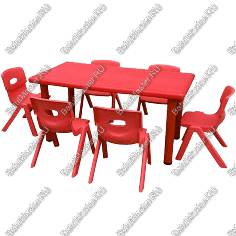 Предлагаемый стол имеет прямоугольную форму столешницы, размеры которой 600 мм на 450 мм. Высота положения столешницы рассчитана на детей среднего и старшего детсадовского возраста и составляет 1200 мм. За этот стол можно усадить до шести воспитанников. Для этого стол комплектуется шестью стульями для детского сада. По цвету, стулья могут быть аналогичными покраске стола, но могут иметь и окраску других цветов радуги. Основное требование – подбор стульев по высоте, которая будет обеспечивать удобное использование.