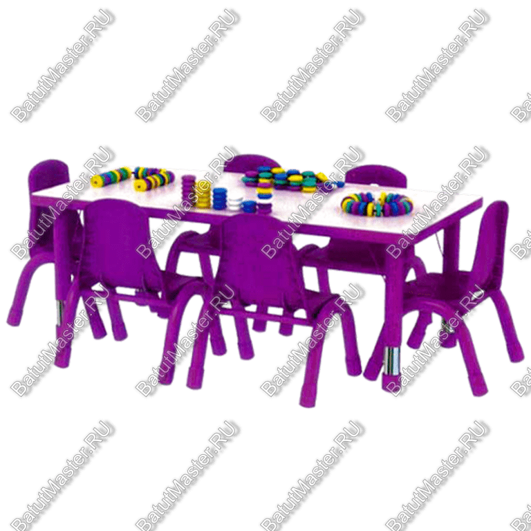 Стол можно укомплектовать стульями для детского сада различной формы, которая будет удобна, и будет соблюдать соответствие габаритных размеров. При высоте прямоугольной столешницы 1200 мм стол можно укомплектовать самыми разнообразными стульями, которые будут подходить для данной возрастной группы. Он изготавливается по обычной стандартной конфигурации: четыре ножки и столешница. Конструкция очень надежна и предполагает не только проведение игр, но и прием пищи. С торцевых сторон стола располагается по одному ребенку и по два ребенка с двух других сторон, более длинных. Стол легкий, надежный и удобный. Поверхность столешницы имеет гигиеническое покрытие, без которого его нельзя было бы использовать для приема пищи.
