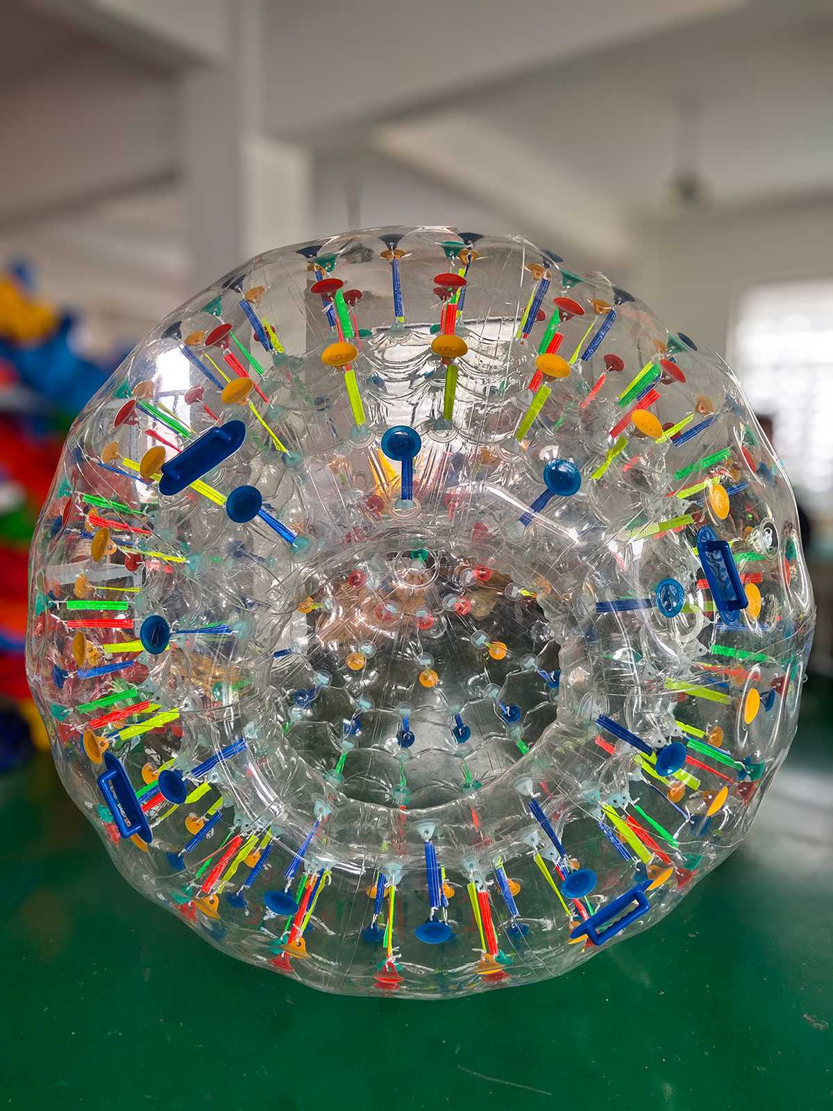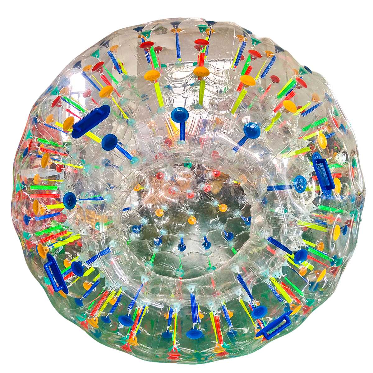 Зорб имеет двойную оболочку: внешнюю и внутреннюю. Между ними — воздушная прослойка, создающая эффект амортизации и защиты.