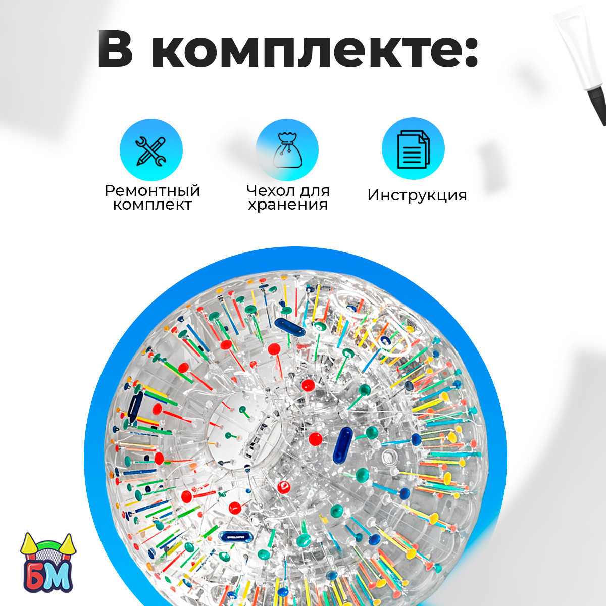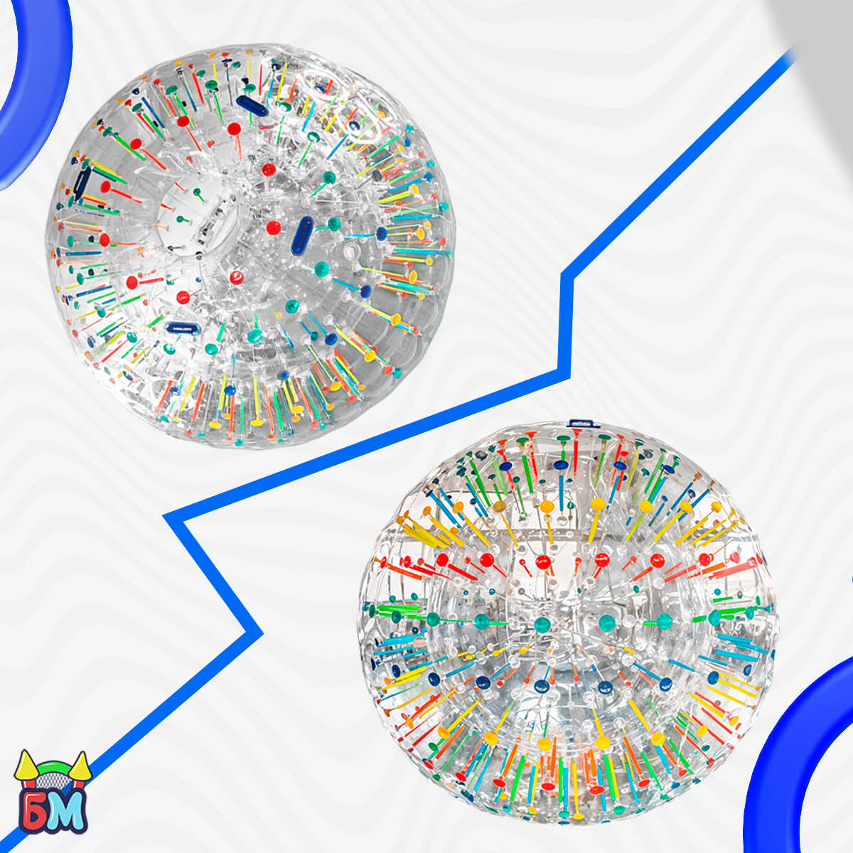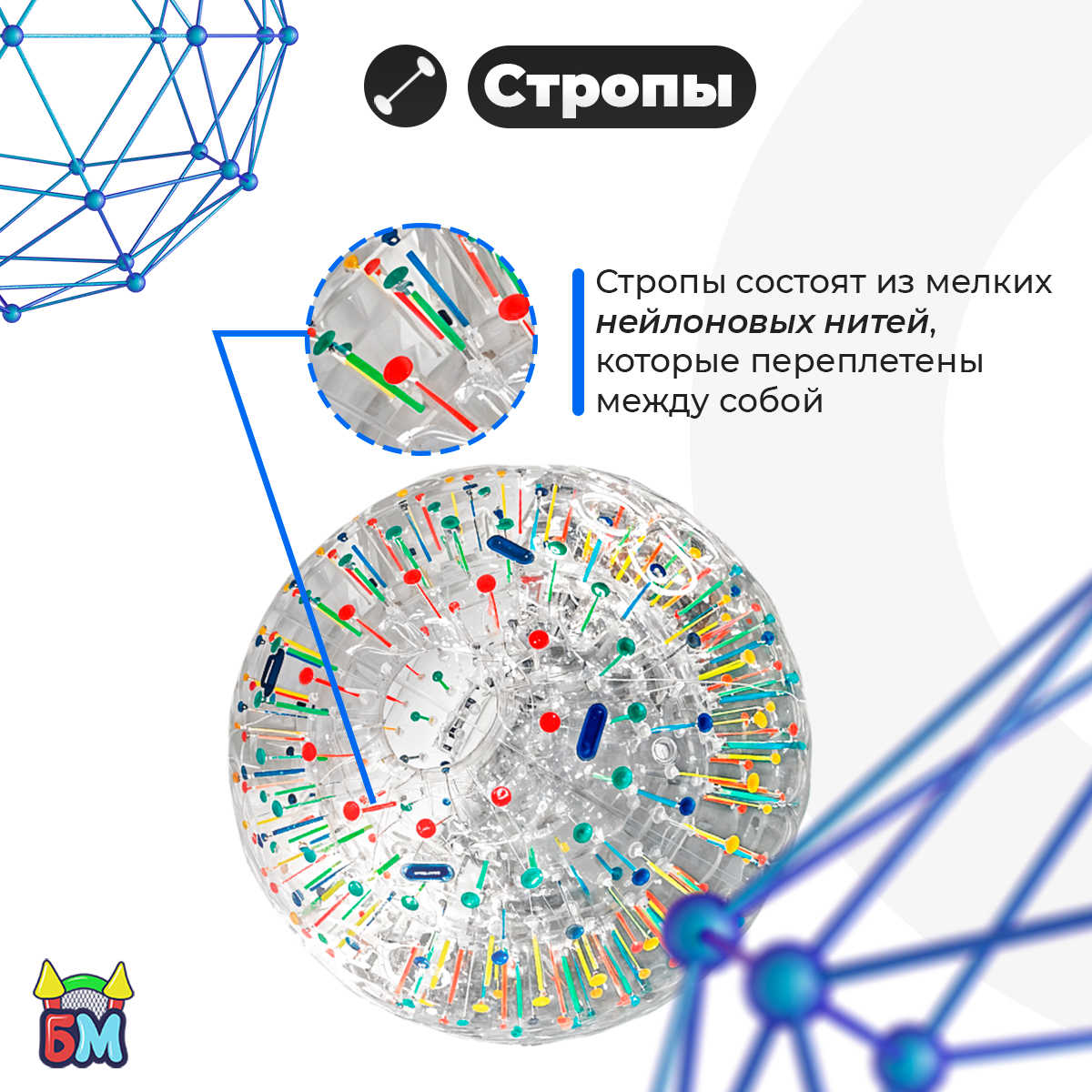 - Прозрачная поверхность и стильные белые стропы делают зорб эстетичным и современным.