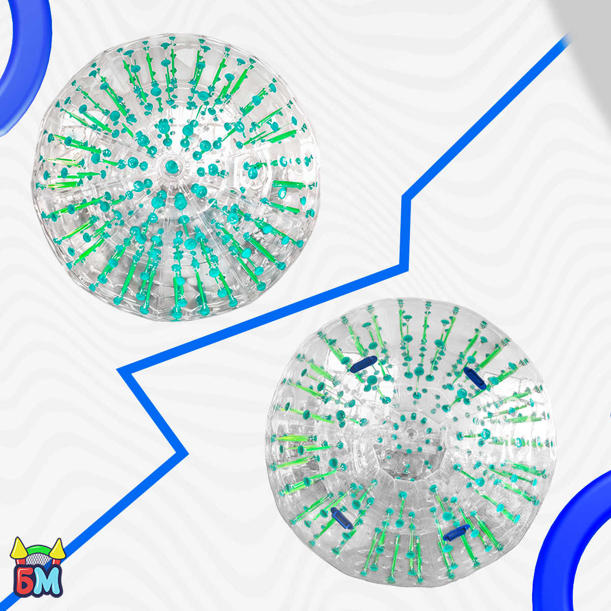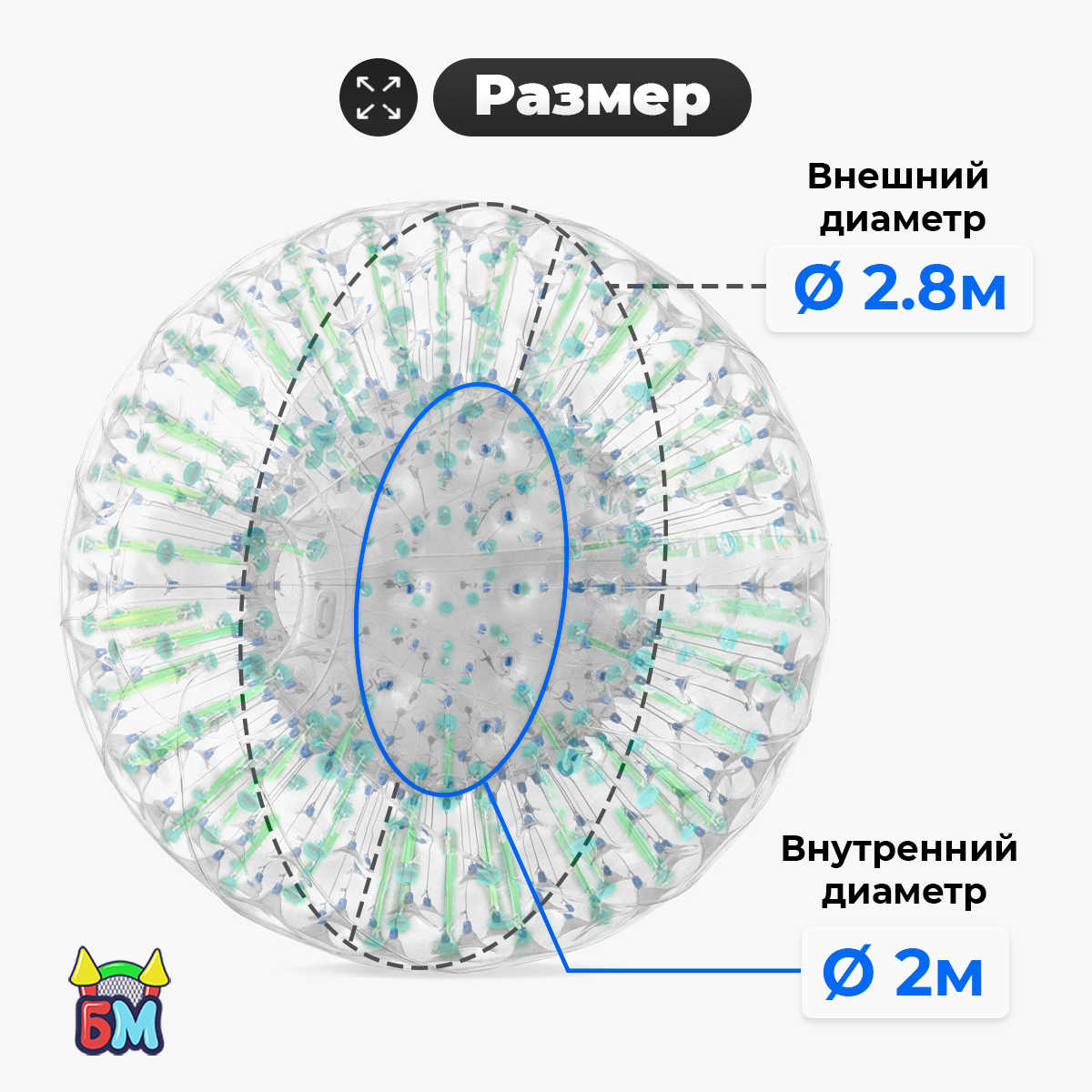 Зорб имеет двойную оболочку: внешнюю и внутреннюю. Между ними — воздушная прослойка, создающая эффект амортизации и защиты.