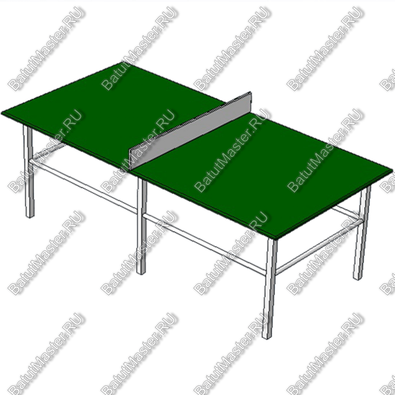 Теннисный стол имеет конструкцию обычного стола. Габариты его составляют 2,4 х 1,2 х 0,9 метра, что вполне отвечает требованиям к изготовлению спортивного оборудования. Стол не тяжелый, поэтому легко передвигается и не нагружает половую покрытие, может быть просто вкопан в грунт. Основная его рабочая поверхность – столешница, на которой закреплена сетка. Столешница установлена на раме из профильной стальной трубы с толщиной стенки не менее 2 мм. Поверхность трубы оцинкованная.