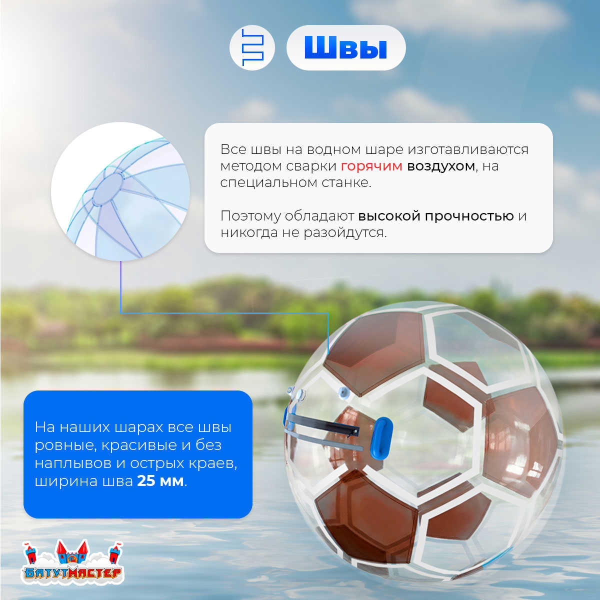 Это безопасный, зрелищный и необычный способ развлечения. В отличие от других водных аттракционов, шар позволяет оставаться сухим, находясь прямо на воде. Это делает его особенно популярным среди детей, подростков и родителей.
