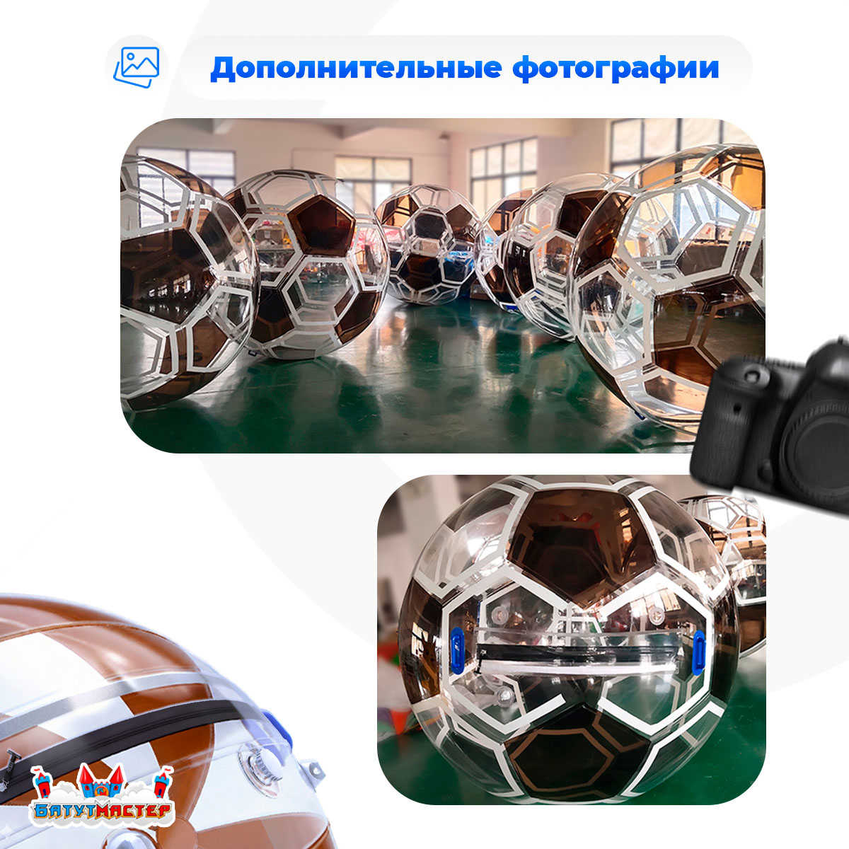 Добавь в свой бизнес эффект “ВАУ”! С водным шаром "Футбольный мяч" ты не просто запускаешь водный аттракцион — ты запускаешь эмоции, смех и прибыль. Закажи сегодня — и забивай свой первый гол уже завтра!
