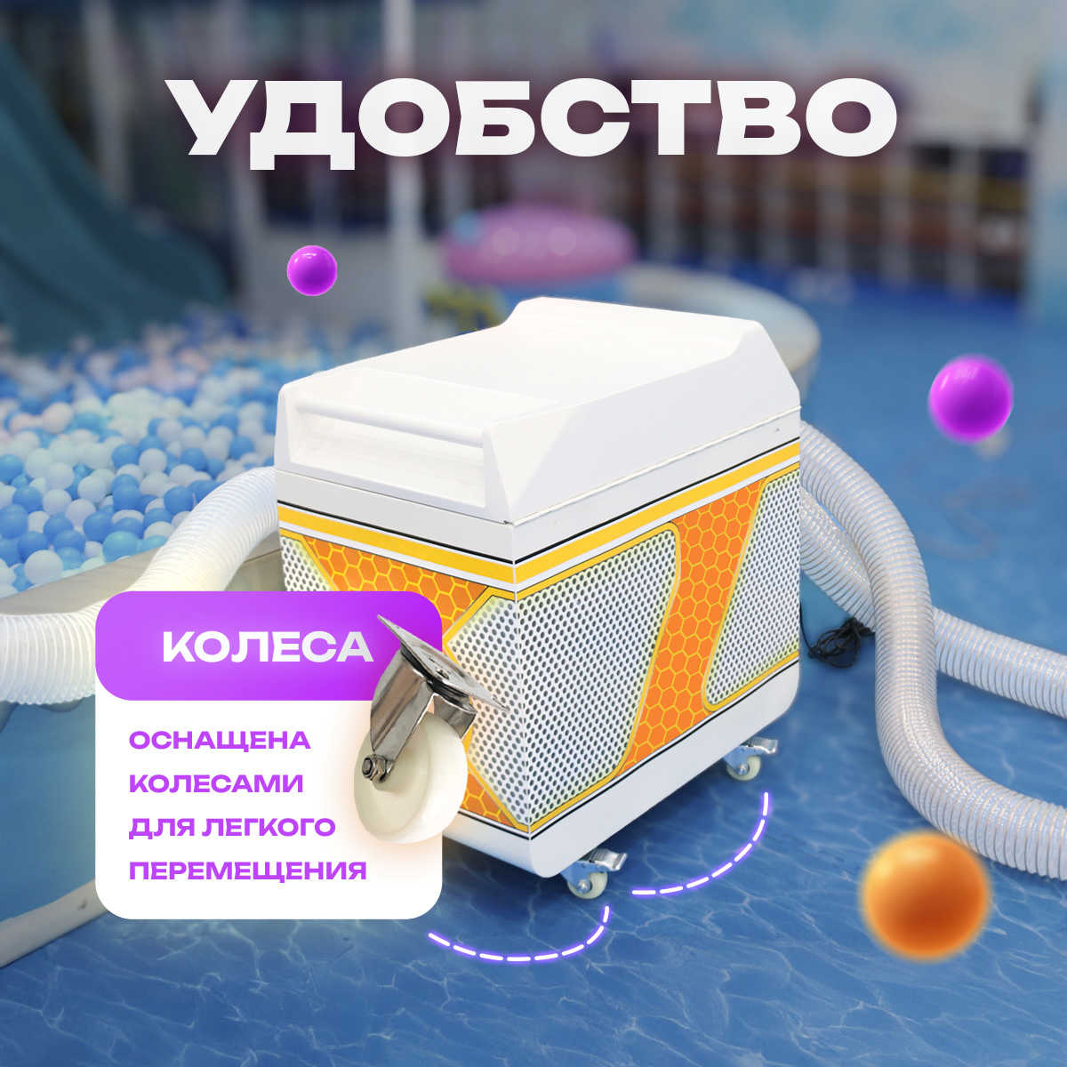 - Колесики обеспечивают простоту транспортировки до сухого бассейна;