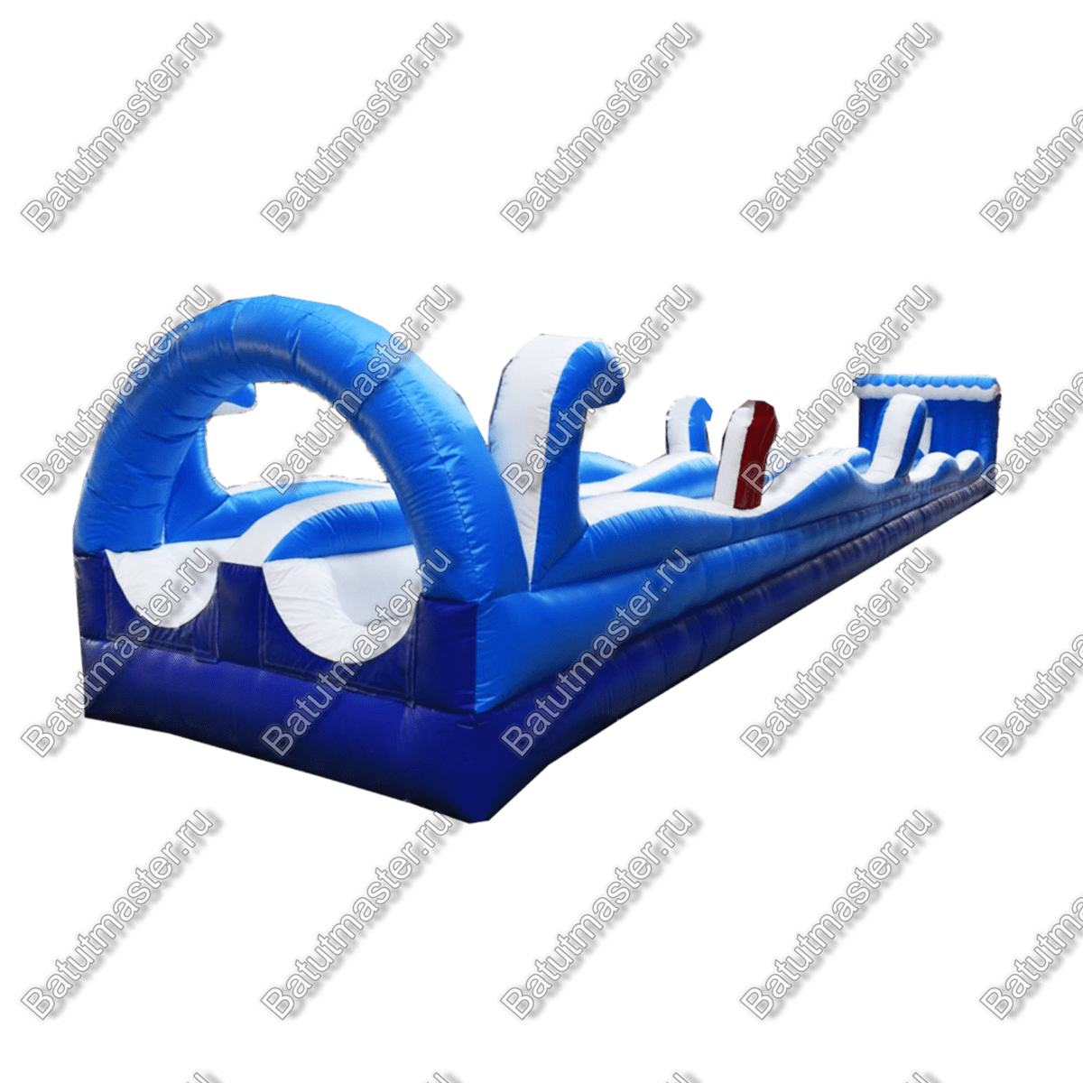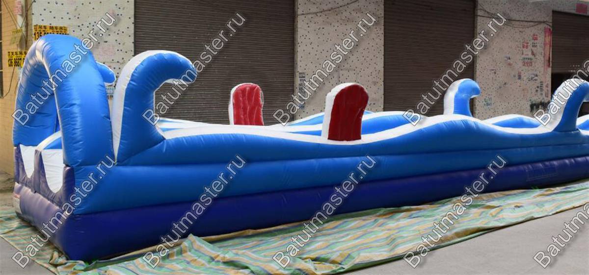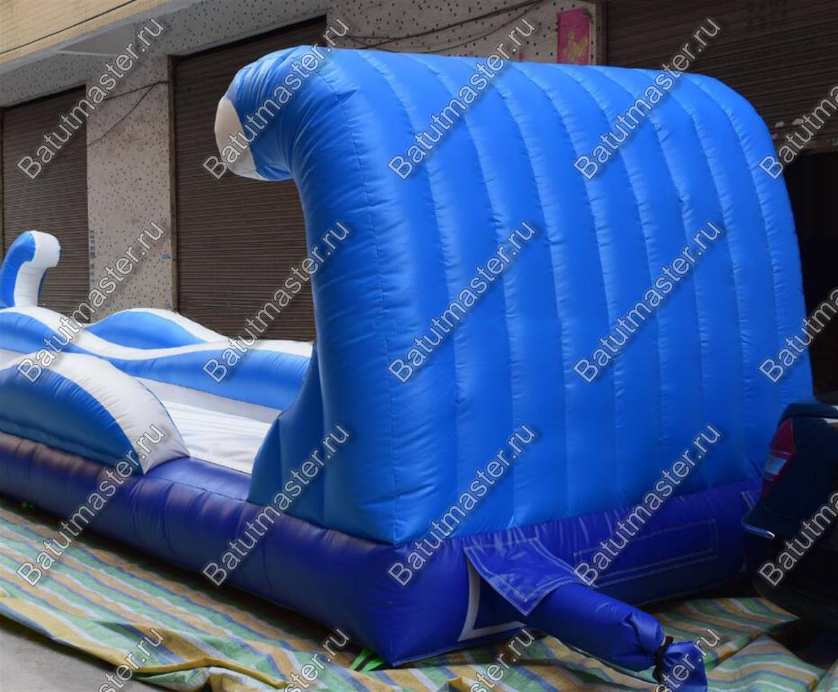 Встречайте горку «Под волной» — это впечатляющий надувной аттракцион длиной 40 метров, шириной 5 метров и высотой 3 метра, выполненный в яркой морской стилистике. Волнообразные формы, бело-синие цвета и энергичный дизайн сразу же привлекают внимание и создают атмосферу летнего курорта. Аттракцион предназначен для скатки по водной дорожке, что делает его идеальным для установки на склонах, где создаётся естественное ускорение.