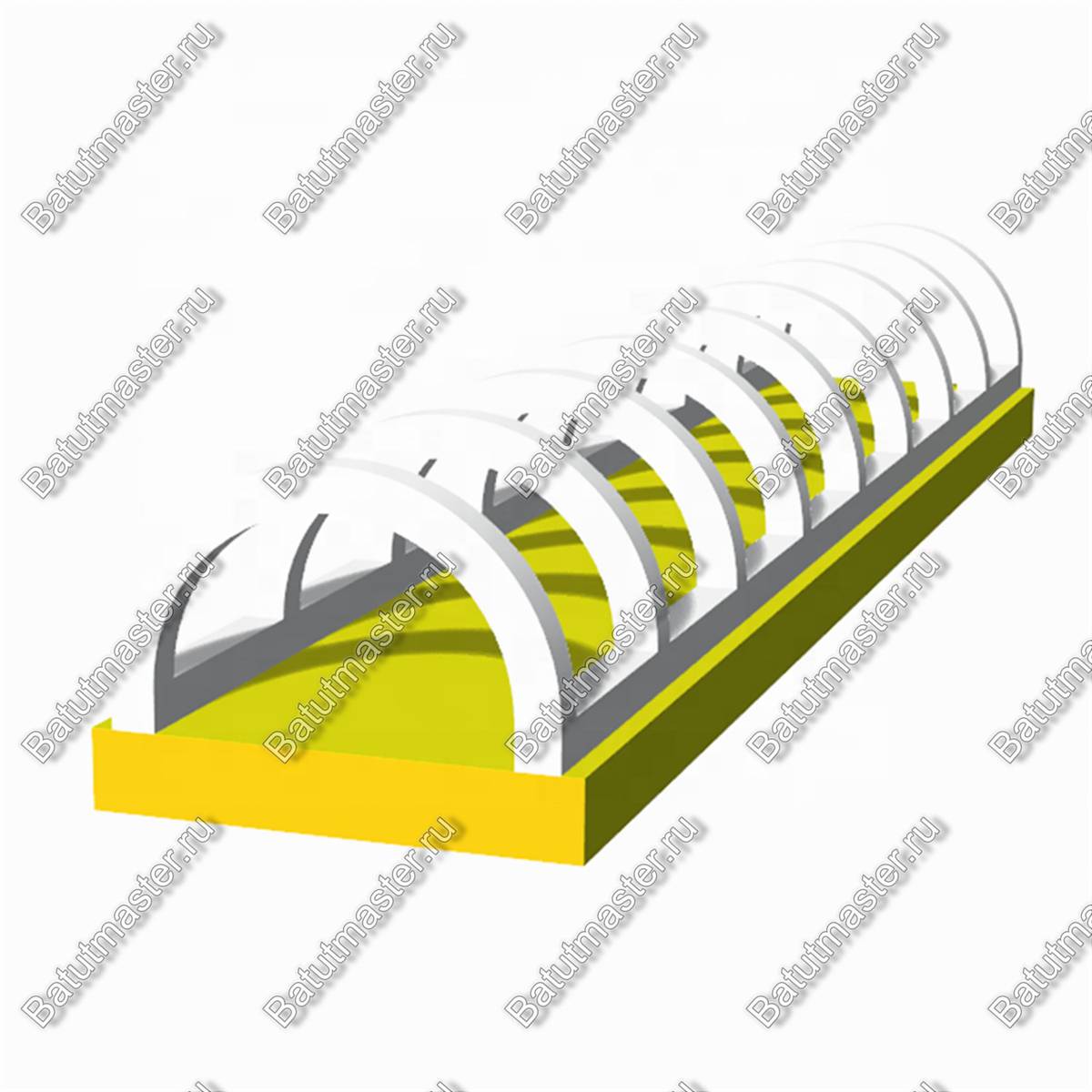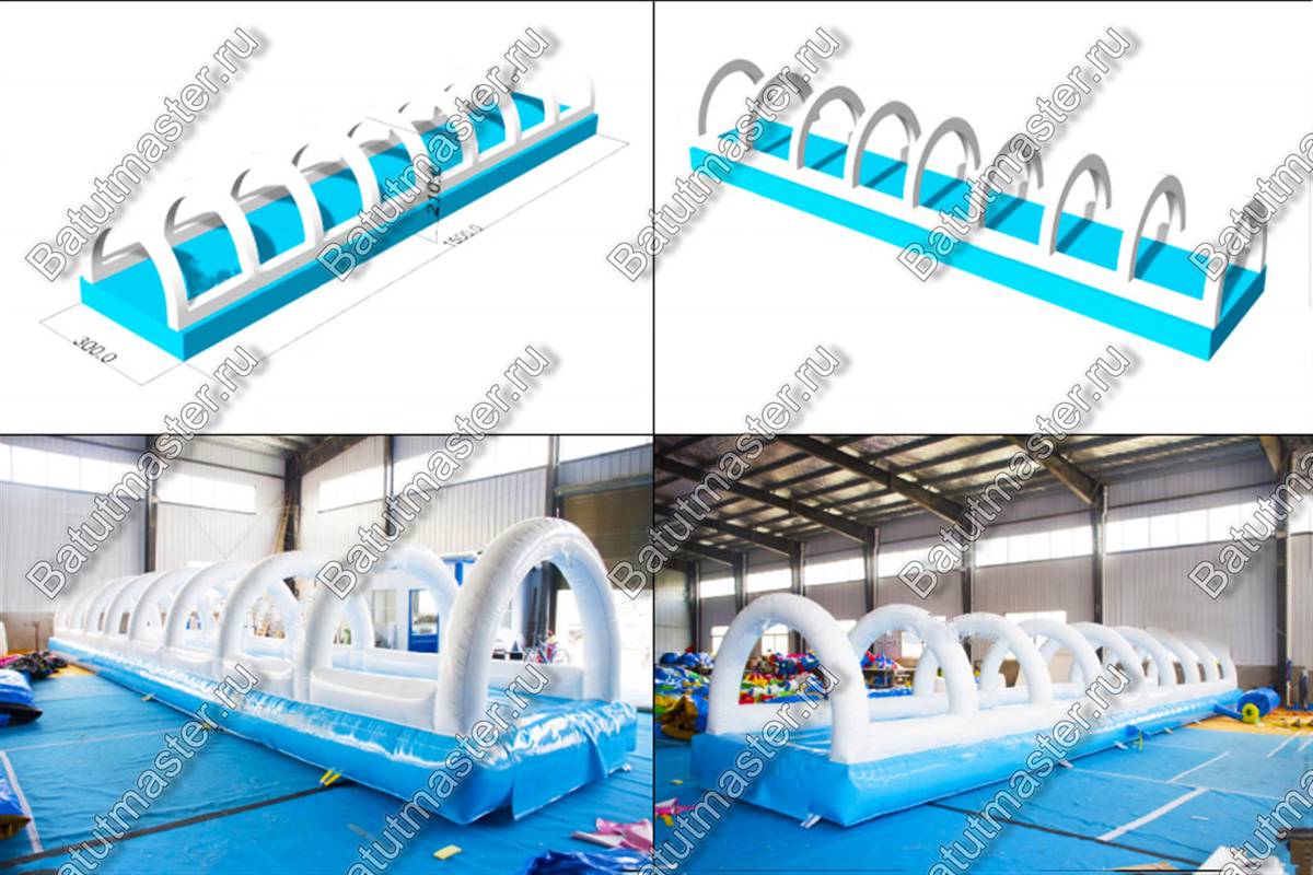Конструкция горки — арочный тоннель с единым скатом и надувным дном. Благодаря постоянной подкачке обеспечивается нужное давление воздуха и стабильность конструкции во время использования. Арки выполняют не только эстетическую функцию, но и повышают безопасность, ограничивая боковое движение.