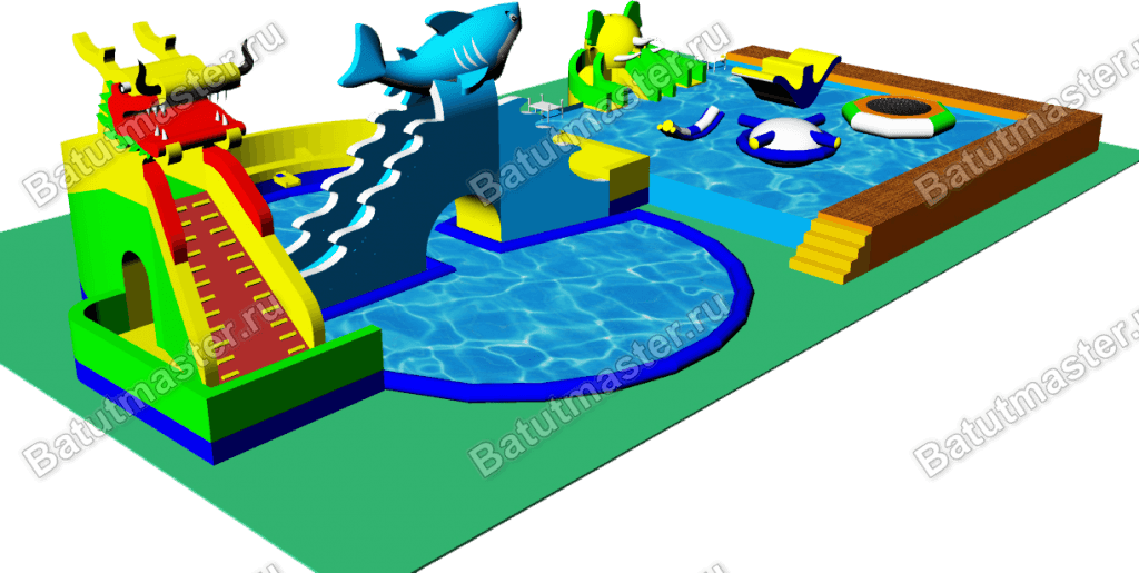 Достаточно просторный и несложный надувной аквапарк можно разместить не только на пляже, но и на любой площадке с необходимыми размерами. Такая мобильность позволяет владельцам аттракционов на воде получать прибыль круглый год и перемещать аквапарк с одного места на другое.