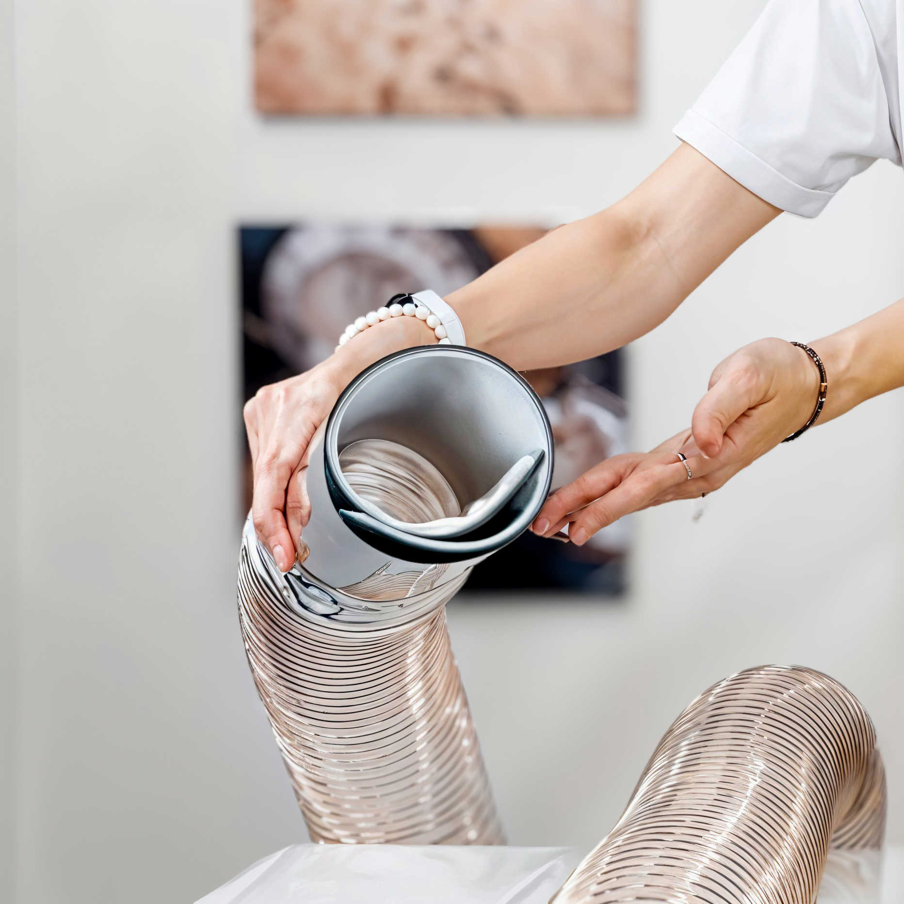 • Смочите фильтр в воде с дезинфицирующим раствором и удалите излишки влаги.