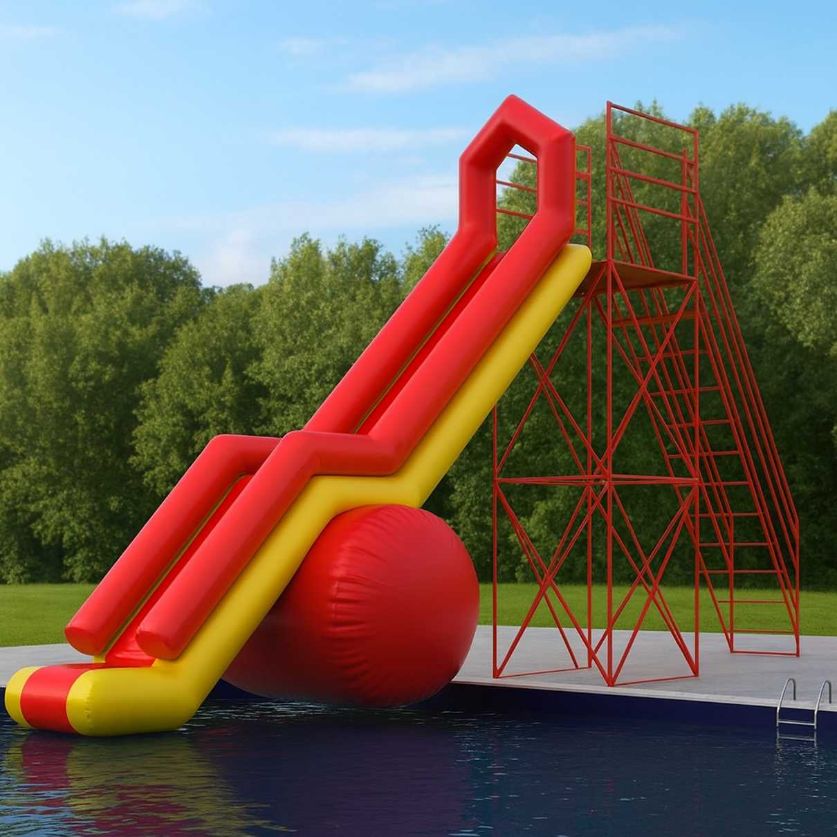 Безопасность заложена в конструкцию: ограждения по бортам ската и на участках подъёма удерживают пользователя в пределах игрового контура, а профиль желоба направляет траекторию строго вниз без неожиданных манёвров. Рекомендуется выбирать площадку с чистым мягким дном на природных водоёмах и проверенной глубиной в зоне приводнения. При использовании у бассейнов достаточно выдержать габаритный контур и обеспечить свободные подходы для персонала и посетителей. Рабочий температурный диапазон от 0 до 65 °C позволяет уверенно проводить сезоны в большинстве регионов, а герметичность облегчает контроль ветрогружённых участков: при усилении ветра достаточно приостановить эксплуатацию и дождаться стабилизации условий.