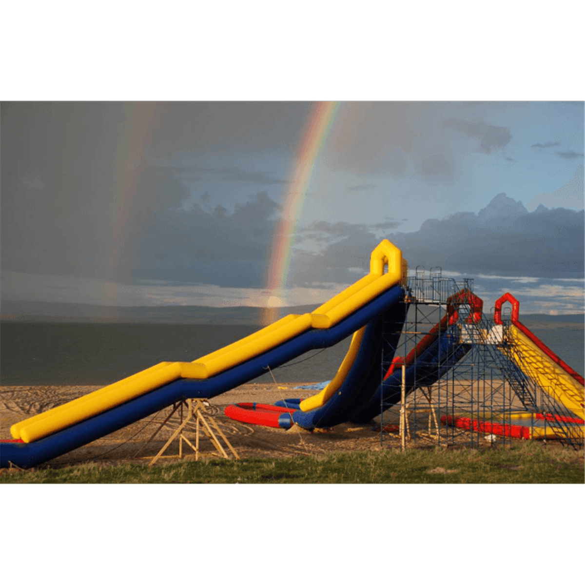 «Стрела PRO» создана как надёжный коммерческий аттракцион для пляжных зон и курортов, где требуется высокая пропускная способность, быстрая окупаемость и выразительная визуальная доминанта. Габариты 13x2.5x5 позволяют организовать впечатляющий спуск с начальной высоты около 4 м при общей высоте конструкции 5 м. Один скат и одна плавная «волна» делают катание прогнозируемым и безопасным, что особенно важно на открытых площадках с высокой посещаемостью. Герметичные оболочки из усиленного армированного ПВХ (толщина 0,55–0,9 мм, плотность 690–1100 г/м²) держат форму под избыточным давлением и устойчивы к истиранию и ультрафиолету. Материал непрозрачный, не бликует, сохраняя яркость фирменных цветов в течение всего сезона.
