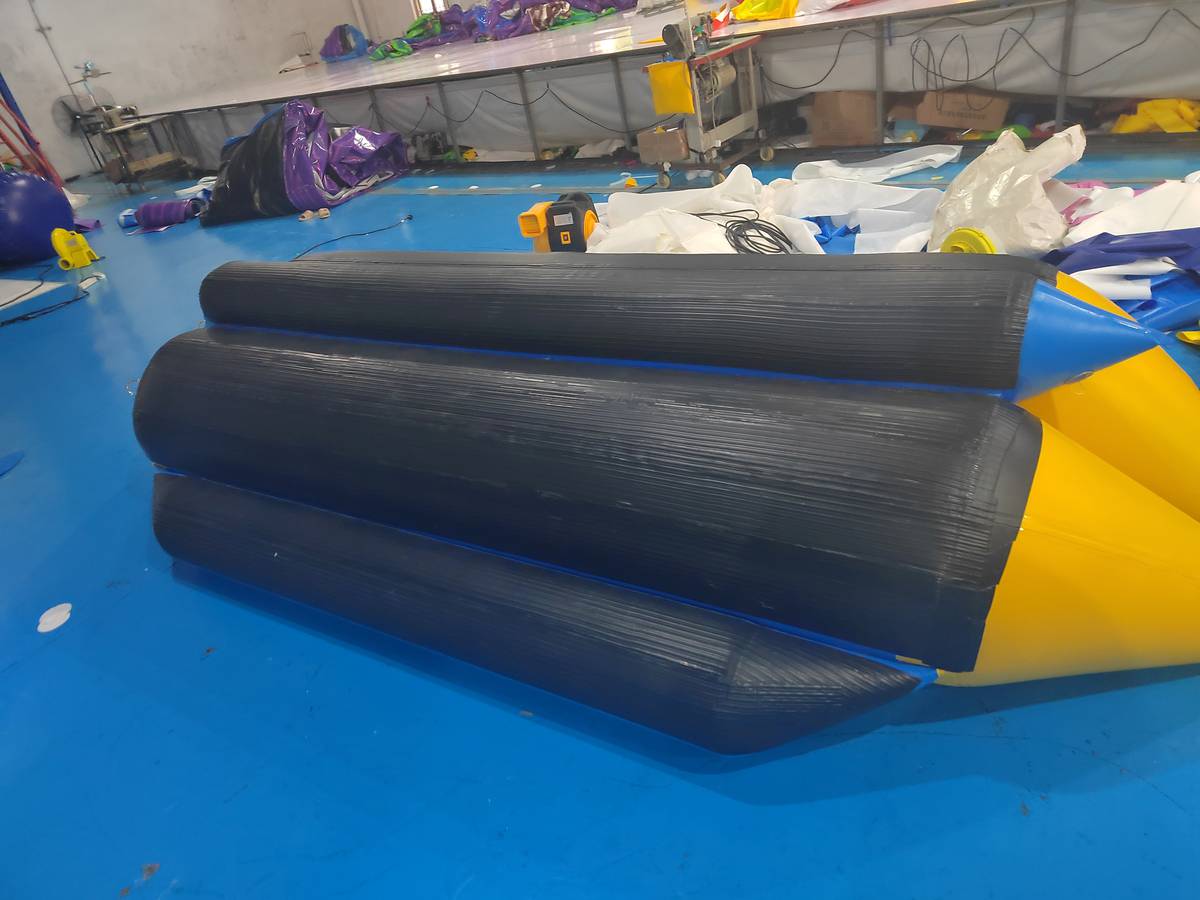 Корпус банана изготовлен из армированного непрозрачного ПВХ плотностью 1100 г/м² и толщиной 0,9 мм. Все швы сварены внахлест шириной 2,5 см, что делает конструкцию герметичной и устойчивой к внешним нагрузкам.