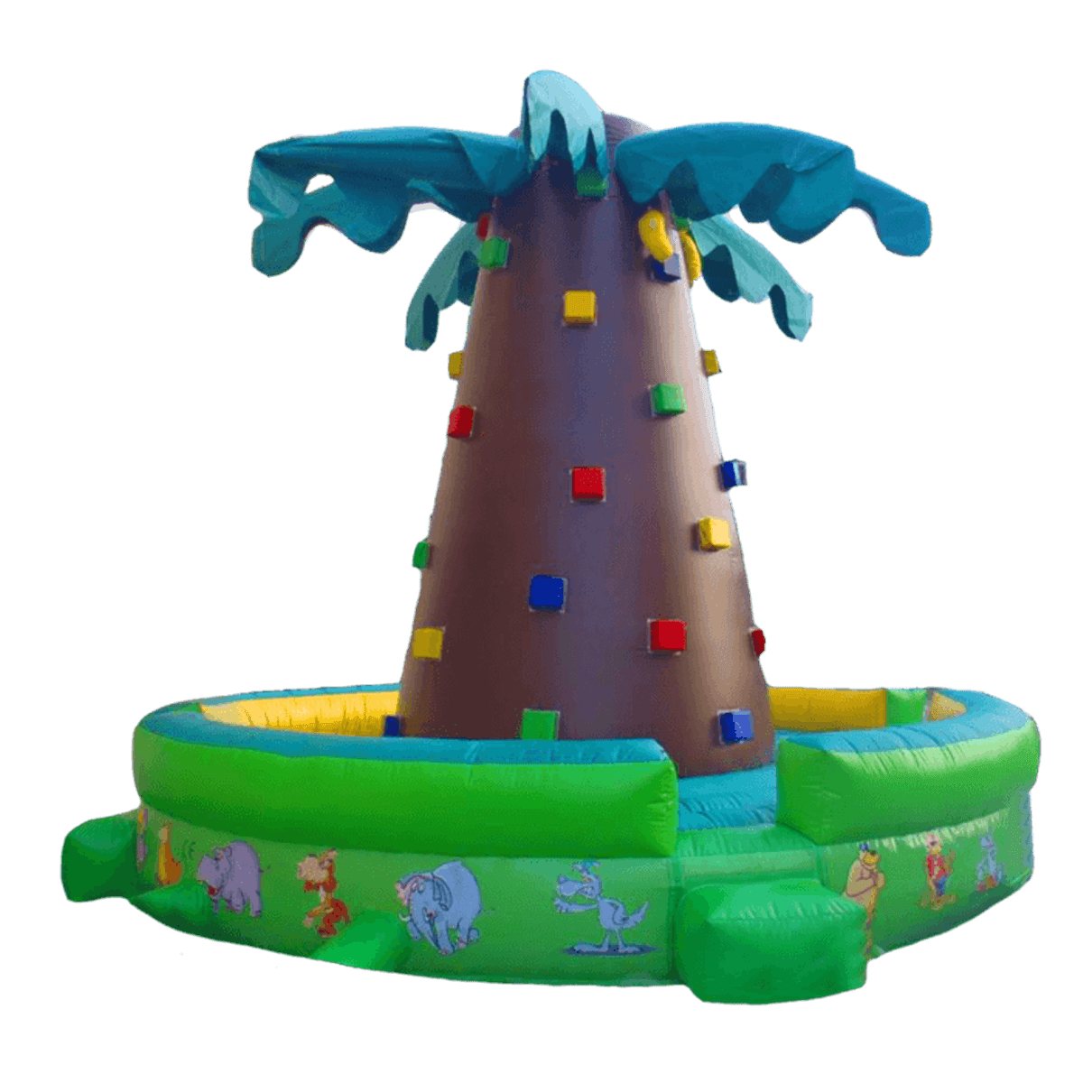 Современный, скалодром в виде пальмы непременно порадует мальчишек и девчонок, ведь забираться высоко станет еще интереснее. Рассчитан на то, чтобы на нем занимались одновременно несколько детей, ведь командные соревнования куда интереснее. Надувной батут - скалодром дает возможность развить силу, выносливость, координацию движений. Весь скалодром оснащен разноцветными щитами, все как у настоящей альпийской горки. Дети должны будут подниматься как можно выше, передвигаясь с одного места на другое и захватывая наиболее удобное положение. Это интересно и увлекательно, ведь погоня за победой дает невероятные ощущения. Скалодром- пальма будет заметен издалека и вызовет восторг своей необычной формой.¶Стоит отметить безопасность комплекса. Сбоку он защищен надувными высокими бортами, это предотвращает от выпадения с игровой зоны. Коммерческий батут полностью надувной, не имеет жестких элементов. Его без труда можно переместить с одного места на другое, а также легко собрать и разобрать. Может быть установлен на любой ровной поверхности и даже на песок. Предназначен для бизнеса. Его можно сдавать в аренду, а также дополнить игровую зону в развлекательном центре, санатории или гостинице.