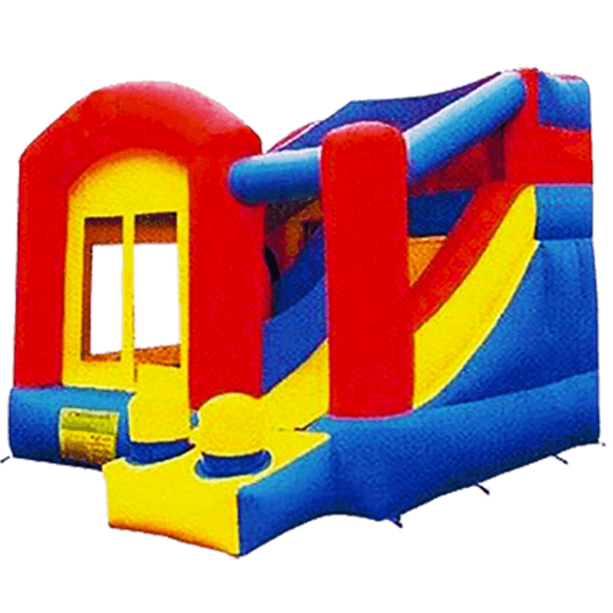 Над основной зоной установлен синий навес, он помогает материалу не нагреваться, поэтому дети не будут испытывать дискомфорта при подъеме или спуске. Внешние стороны выполнены полностью из синего ПВХ, а передняя часть в виде высокого окна – желто-красная. Небольшие размеры конструкции дают возможность владельцу оперативно перевозить батут с одной площадки на другую, выбирая наиболее людное и популярное место. При правильном хранении аттракциона на протяжении многих лет можно не переживать за привлекательность его внешнего вида.