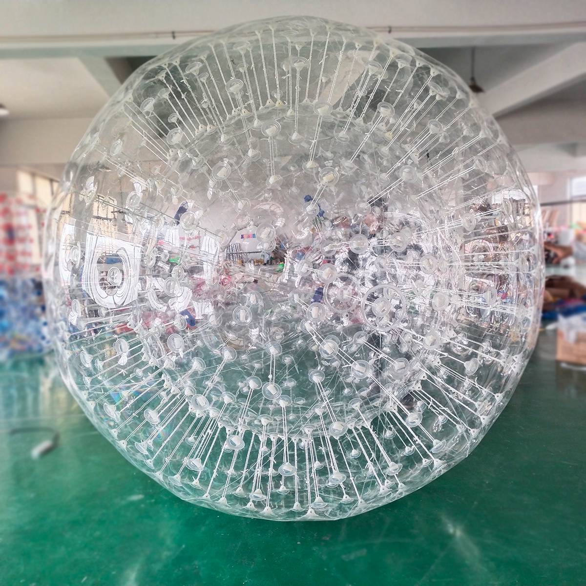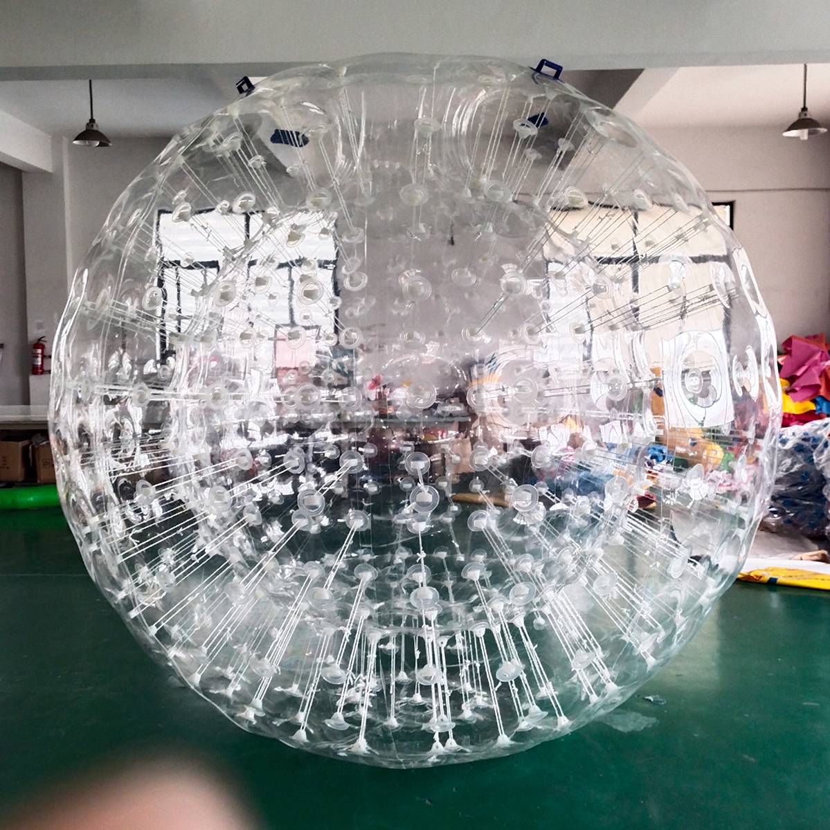 - Прозрачная поверхность и стильные белые стропы делают зорб эстетичным и современным.